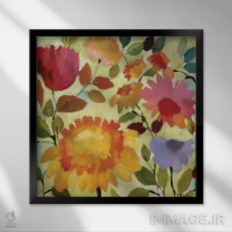 براساس پالت ترکیبی اثر، قاب تیک گرم (چوبی) پیشنهاد اول است و مشکی مات (فریم متوسط) مکمل. برای سفارشهای پروژهای با ابعاد و قابهای اختصاصی با ایماژ در تماس باشید.