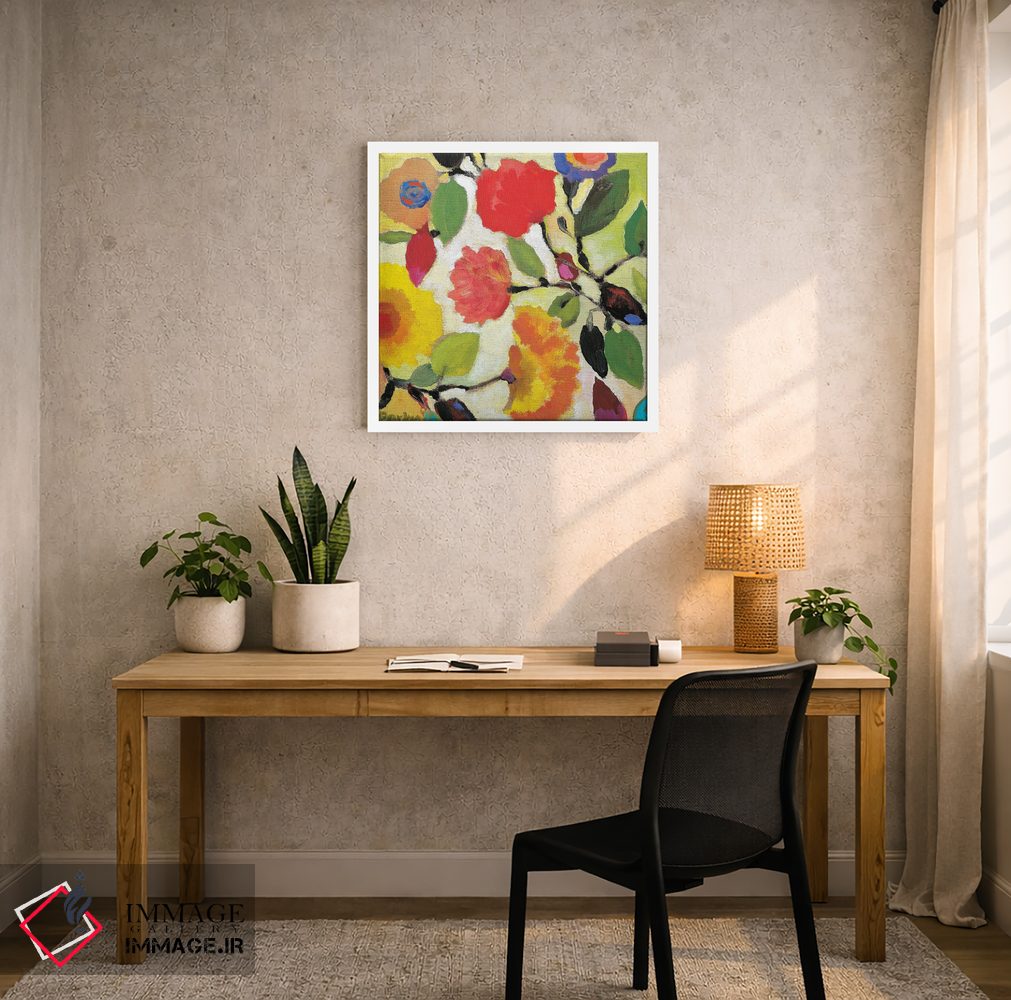 اگر به دکورهای طبیعی علاقه دارید، «کاشی گلدار ۳» اثرِ «کیم پارکر» تعادل رنگیِ لطیفی به چیدمان میدهد، برای دکورهای اسکانباوراوی گزینهٔ مناسبیست. حضورش آرام است، اما بیاثر نیست.