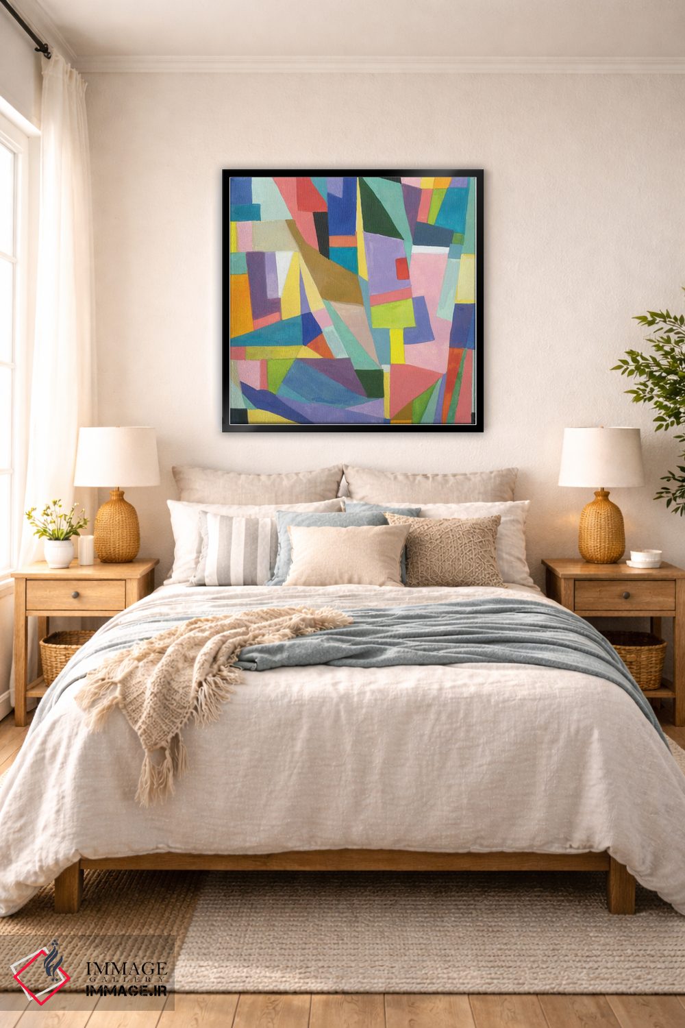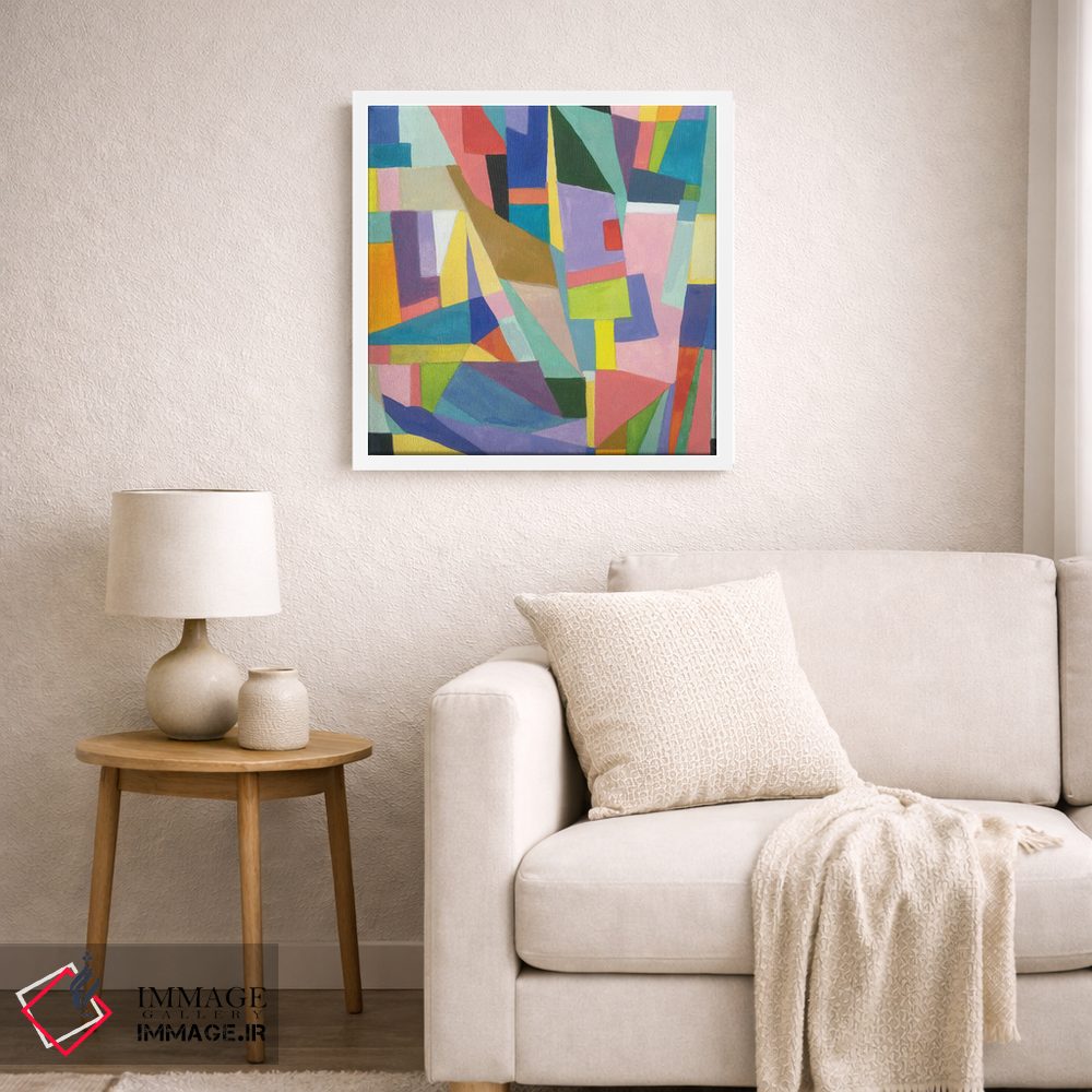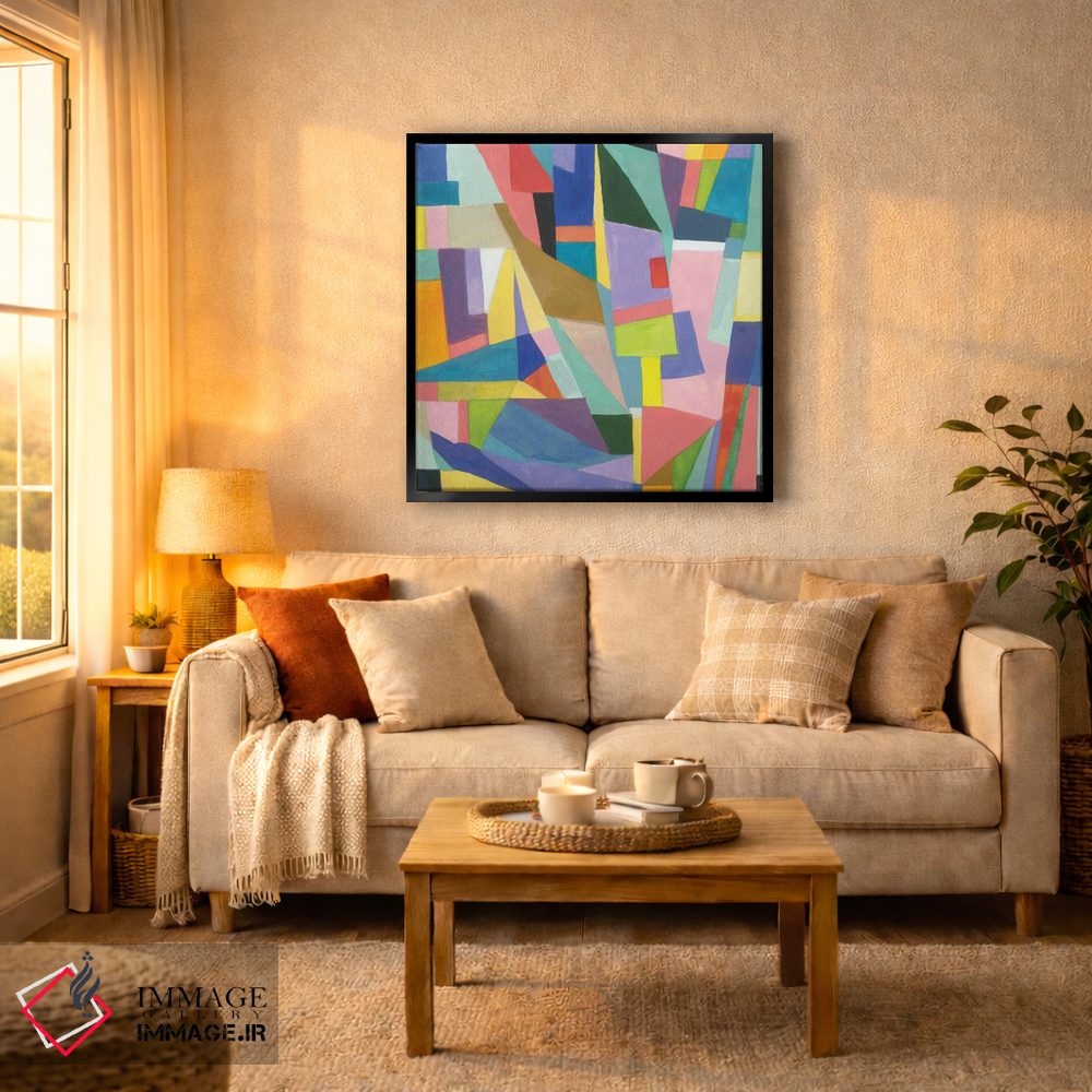 براساس پالت ترکیبی اثر، قاب تیک گرم (چوبی) پیشنهاد اول است و مشکی مات (فریم متوسط) مکمل. برای سفارشهای پروژهای با ابعاد و قابهای اختصاصی با ایماژ در تماس باشید.