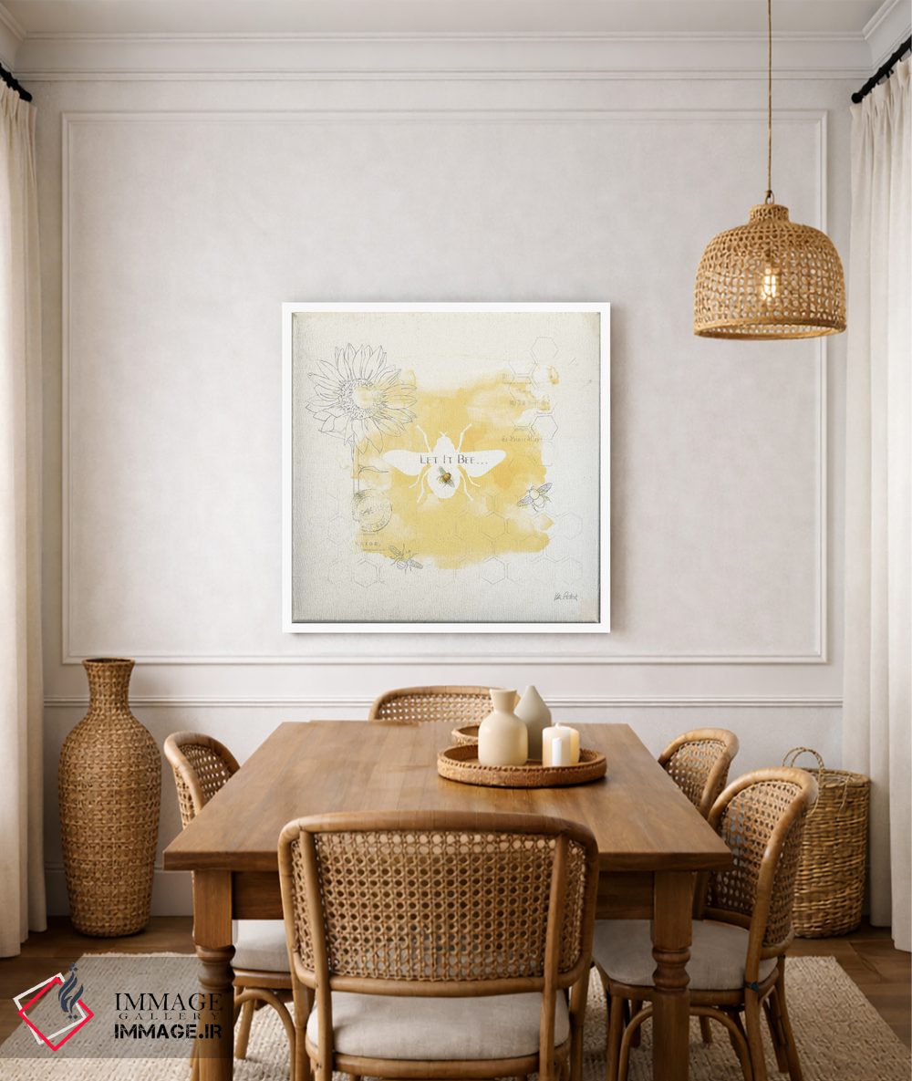 اگر دوست دارید دیوار روشنتر و آرامتر دیده شود، «زنبور و زنبور VII» اثرِ «کیتی پرتیه» حس فصل را آرام وارد فضا میکند، برای کافهها و فضاهای آرام گزینهٔ مناسبیست. برای دیوار گالری هم ترکیبپذیر و خوشنشین است.