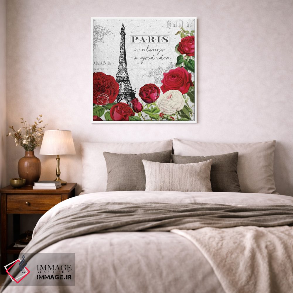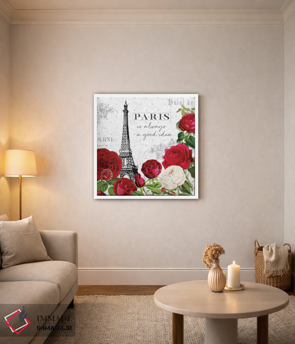 «پاریس قرمز II» اثرِ «کیتی پرتیه» با حالوهوای تزئینیِ این اثر، فضا را روشن و مرتب میکند؛ مناسب نشیمنهای روشن و چیدمانهای مدرن.