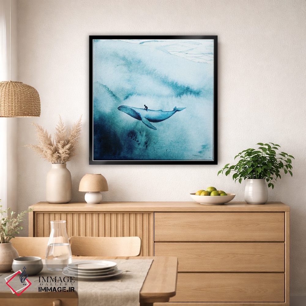 «سوار بر نهنگ» اثرِ «کارلی پرولد» میتواند یک لبخند ریز به چیدمان بدهد؛ برای فضاهای روستیک یا بوهو پیشنهاد میشود. حسش صمیمی است، اما کیفیتش جدی و خوشپرداخت.
