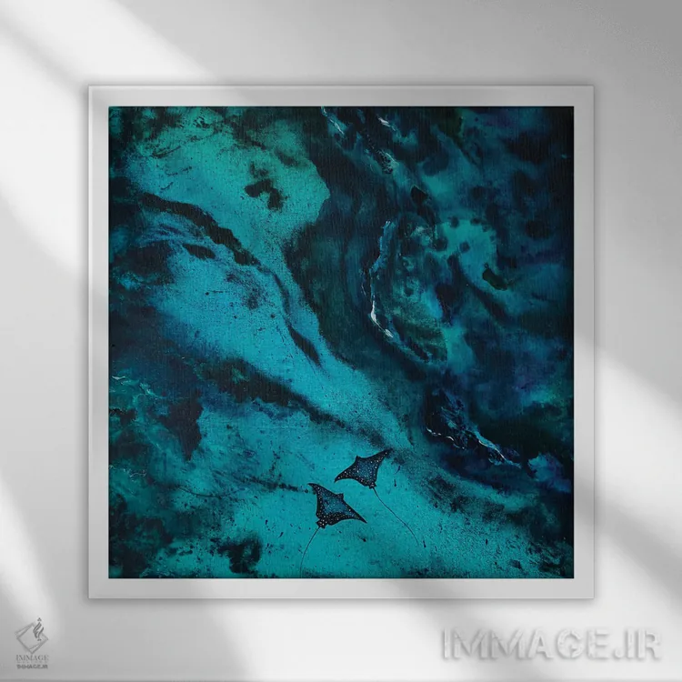 براساس پالت سرد اثر، قاب سفید مات (فریم باریک) پیشنهاد اول است و نقرهای برسخورده (متالیک) مکمل. برای سفارشهای پروژهای با ابعاد و قابهای اختصاصی با ایماژ در تماس باشید.