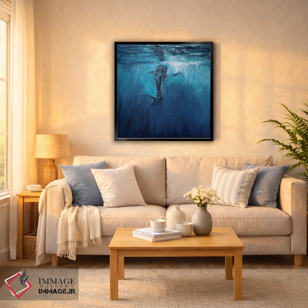 تابلو دکوراتیو کوسه نهنگ و غواص اثر کارلی پرولد
