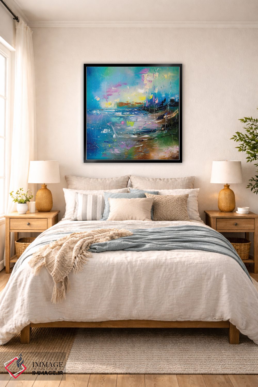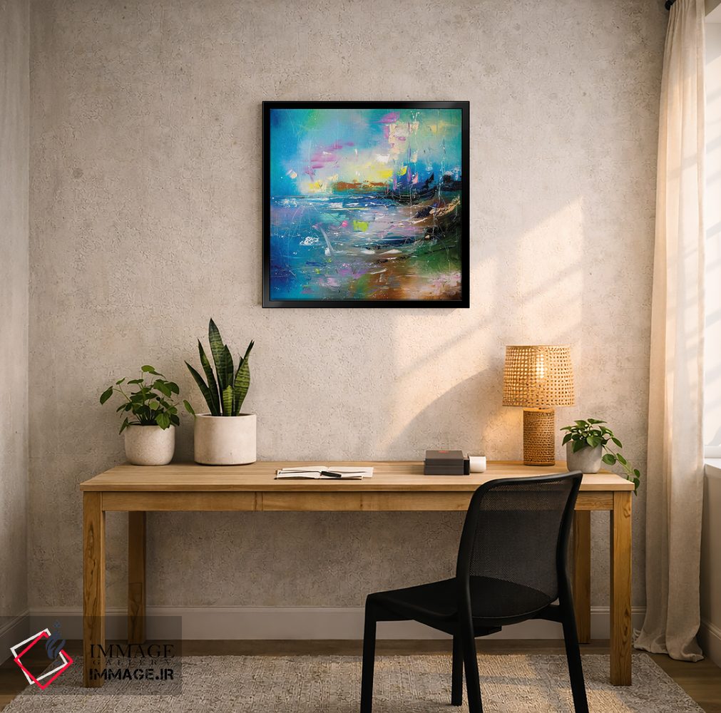 براساس پالت ترکیبی اثر، قاب تیک گرم (چوبی) پیشنهاد اول است و مشکی مات (فریم متوسط) مکمل. برای سفارشهای پروژهای با ابعاد و قابهای اختصاصی با ایماژ در تماس باشید.
