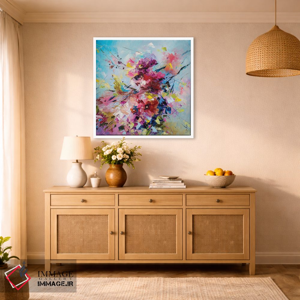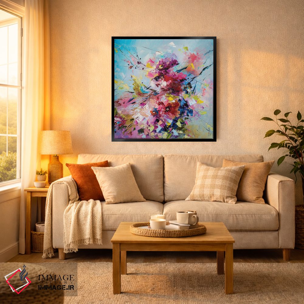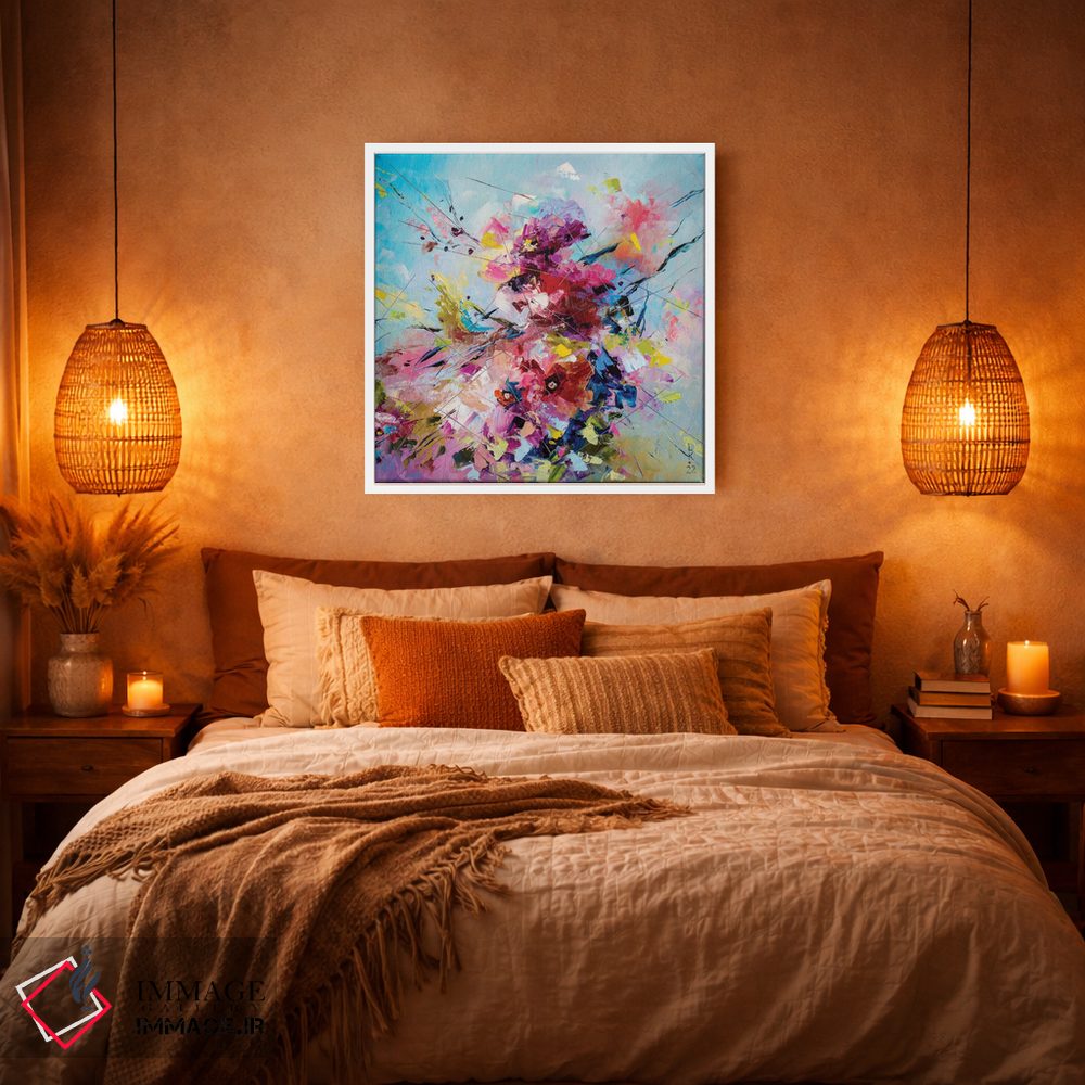 برای اتاق خواب و نشیمنهای آرام، «شکوفه لطیف» اثرِ «کوپتسووا آرت (استودیو یا برند هنری)» چیدمان را از خشکی بیرون میآورد؛ برای فضاهای بوهمی انتخابی خوشسلیقه است. فضا را شلوغ نمیکند؛ فقط لطیفترش میکند.