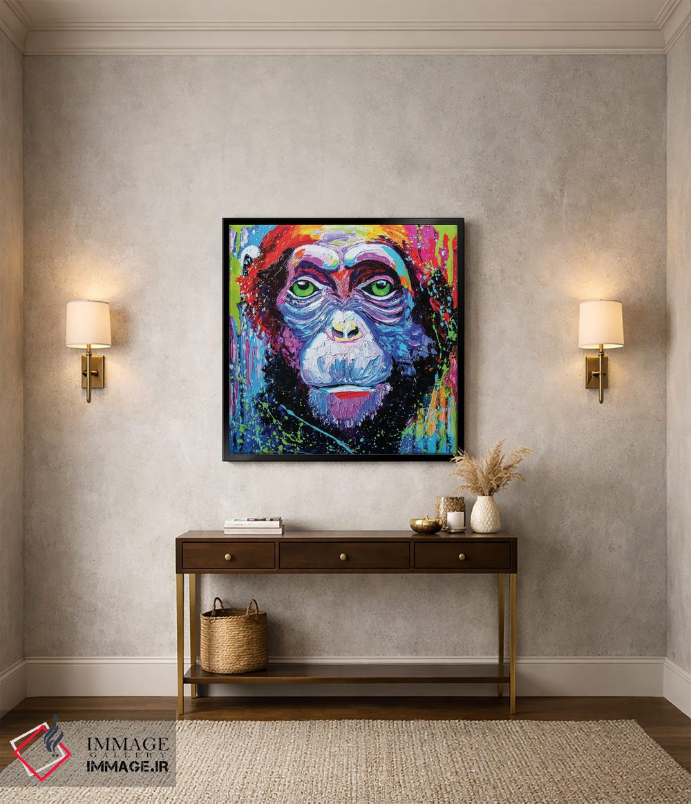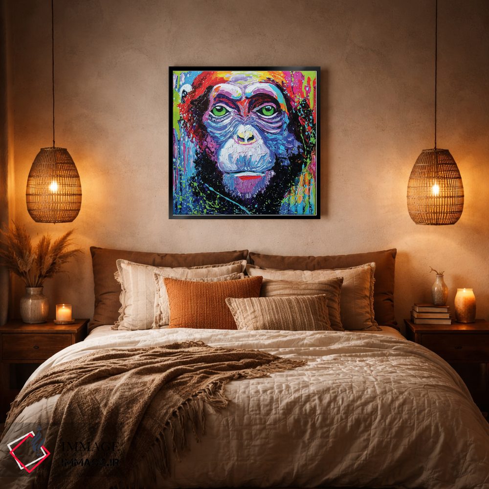 این اثر با عنوان «من شامپانزهام ۱» اثرِ «کوپتسووا آرت (استودیو یا برند هنری)» حس طبیعت را بیدغدغه وارد خانه میکند؛ برای خانههایی با چوب و پارچههای گرم انتخابی خوشسلیقه است. حسش صمیمی است، اما کیفیتش جدی و خوشپرداخت.