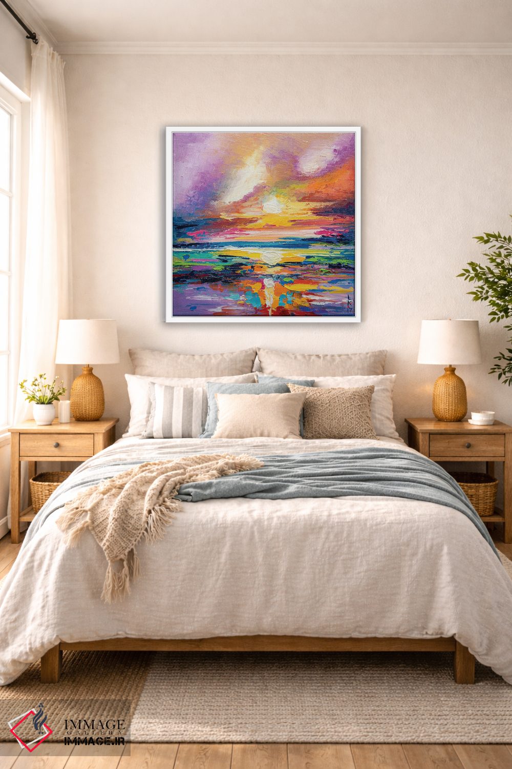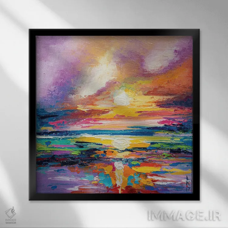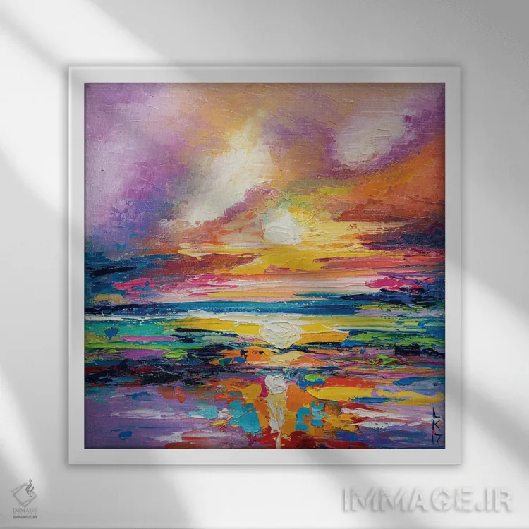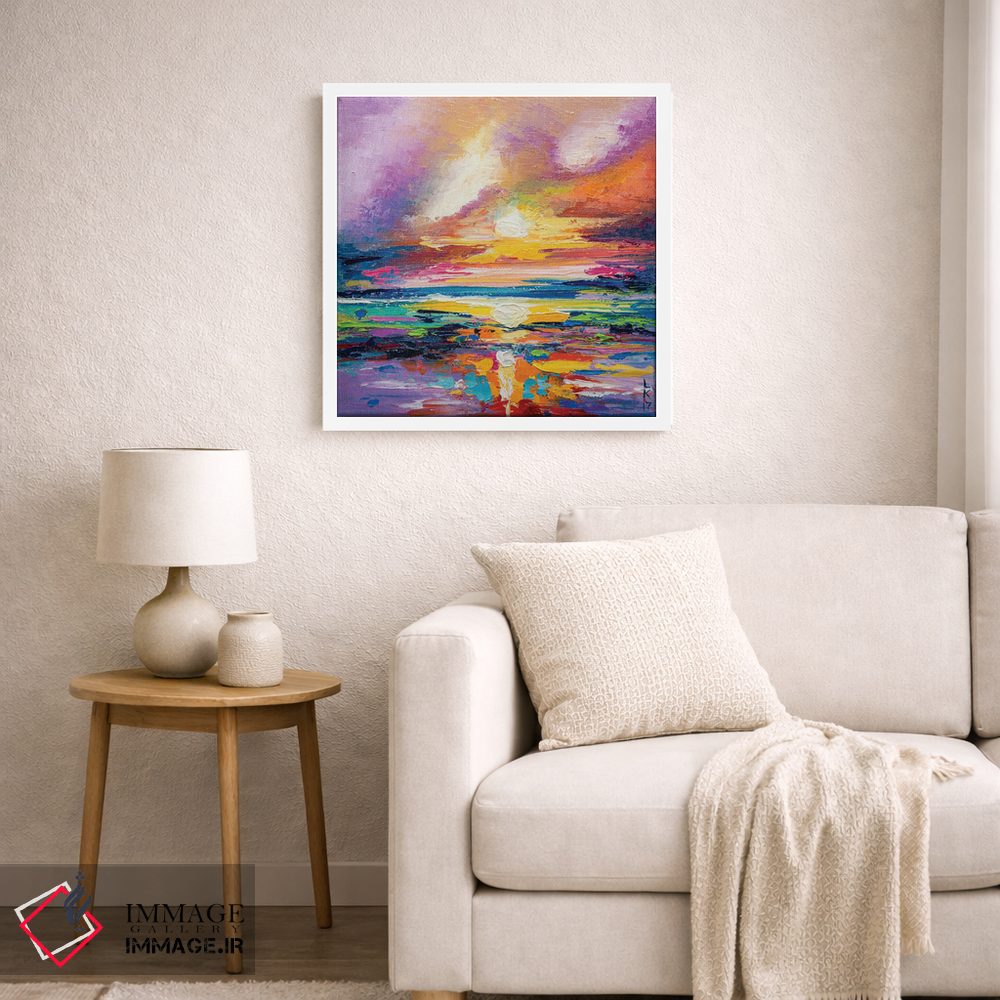 در «طلوع آفتاب» اثرِ «کوپتسووا آرت (استودیو یا برند هنری)»، رنگ و فرم نقش اصلی را دارند؛ انتخابی خوب برای فضاهای امروزی و دیوارهای مینیمال.