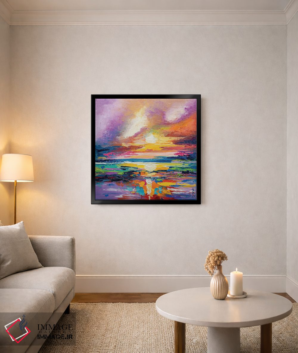 براساس پالت ترکیبی اثر، قاب تیک گرم (چوبی) پیشنهاد اول است و مشکی مات (فریم متوسط) مکمل. برای سفارشهای پروژهای با ابعاد و قابهای اختصاصی با ایماژ در تماس باشید.