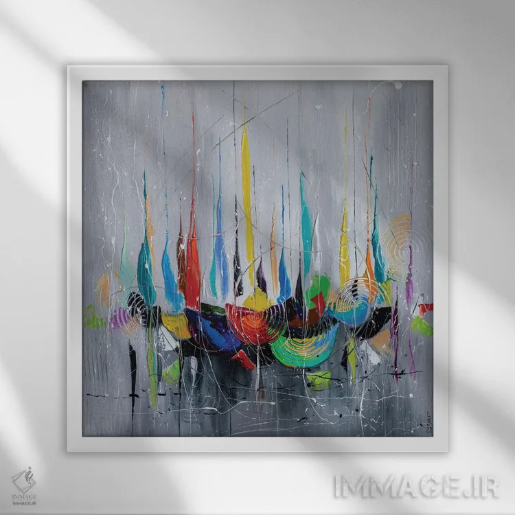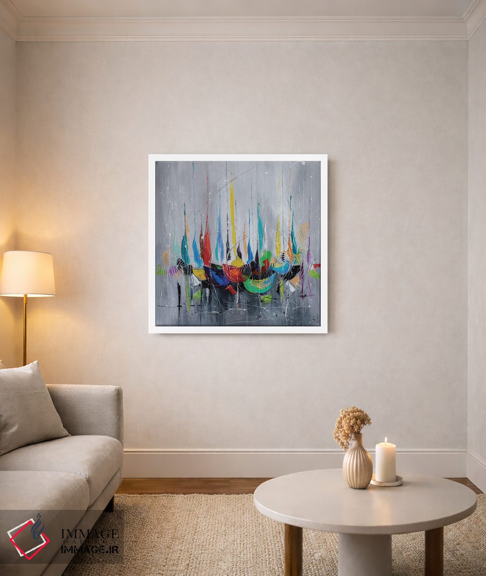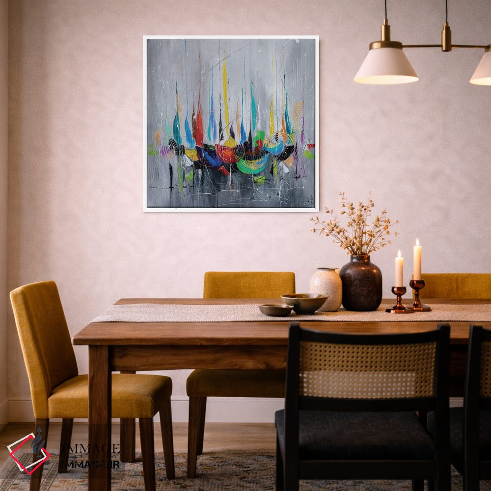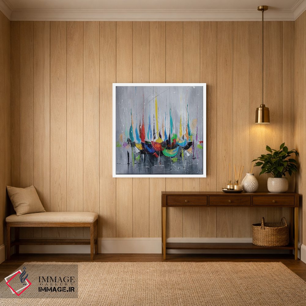 براساس پالت ترکیبی اثر، قاب تیک گرم (چوبی) پیشنهاد اول است و مشکی مات (فریم متوسط) مکمل. برای سفارشهای پروژهای با ابعاد و قابهای اختصاصی با ایماژ در تماس باشید.