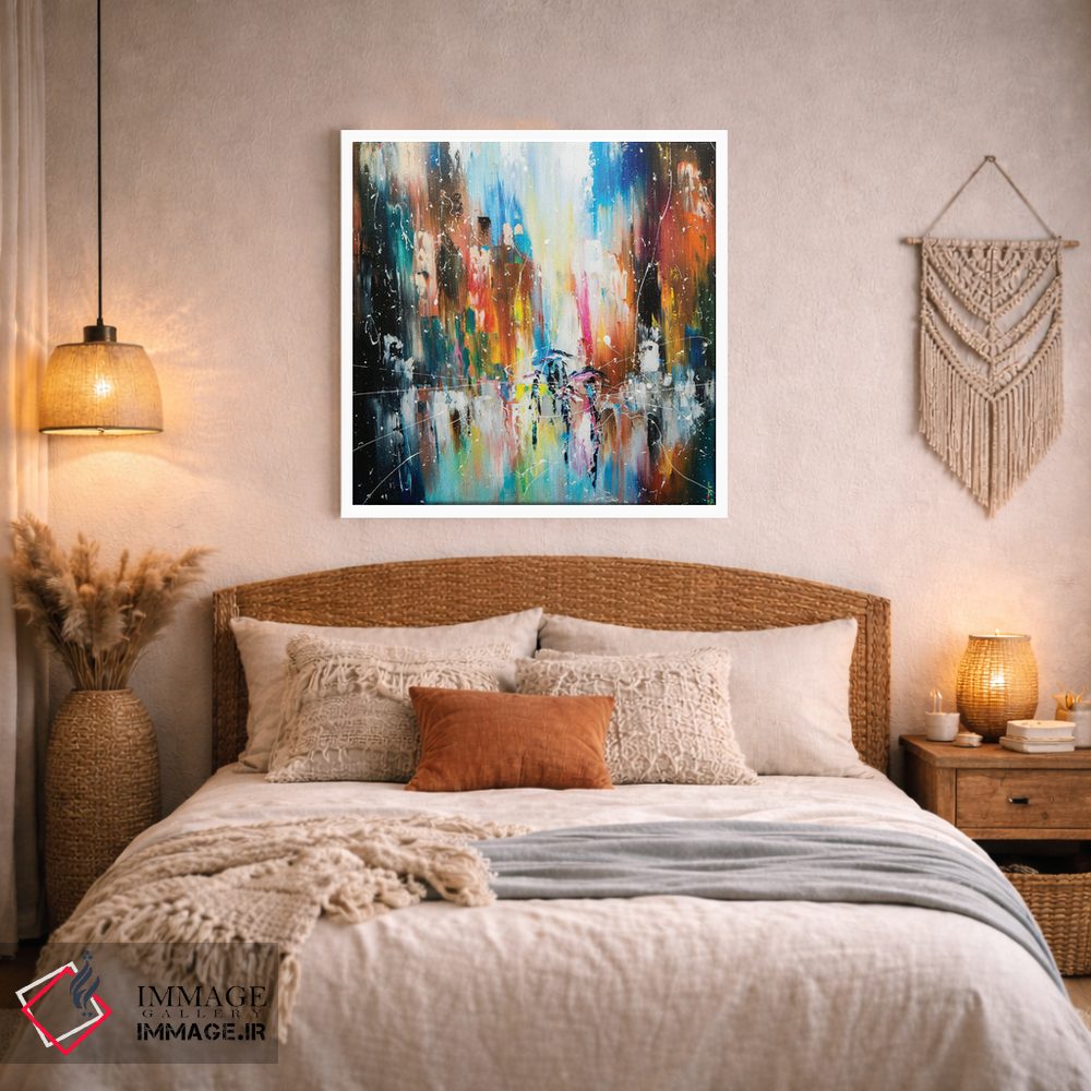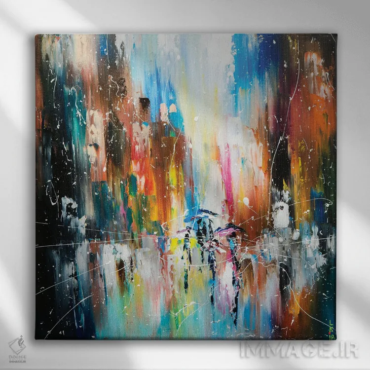 «باران در خیابان» اثرِ «کوپتسووا آرت (استودیو یا برند هنری)» در فضای هنری، بیشتر روی ریتمِ رنگ و فرم تکیه دارد و برای دکورهای مدرن عالی مینشیند.