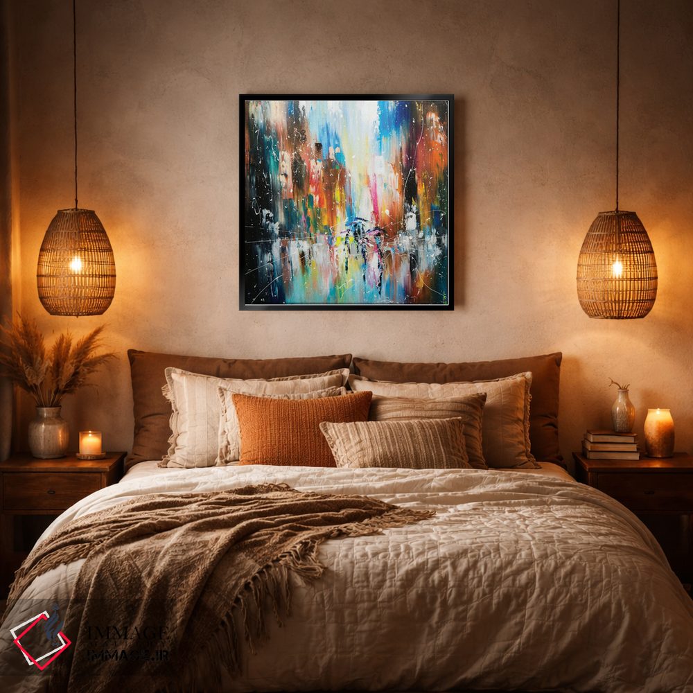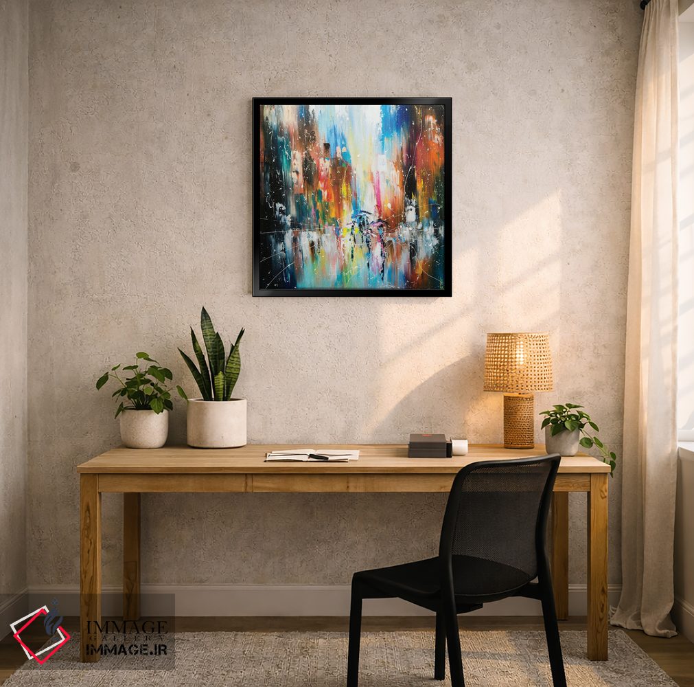براساس پالت ترکیبی اثر، قاب تیک گرم (چوبی) پیشنهاد اول است و مشکی مات (فریم متوسط) مکمل. برای سفارشهای پروژهای با ابعاد و قابهای اختصاصی با ایماژ در تماس باشید.