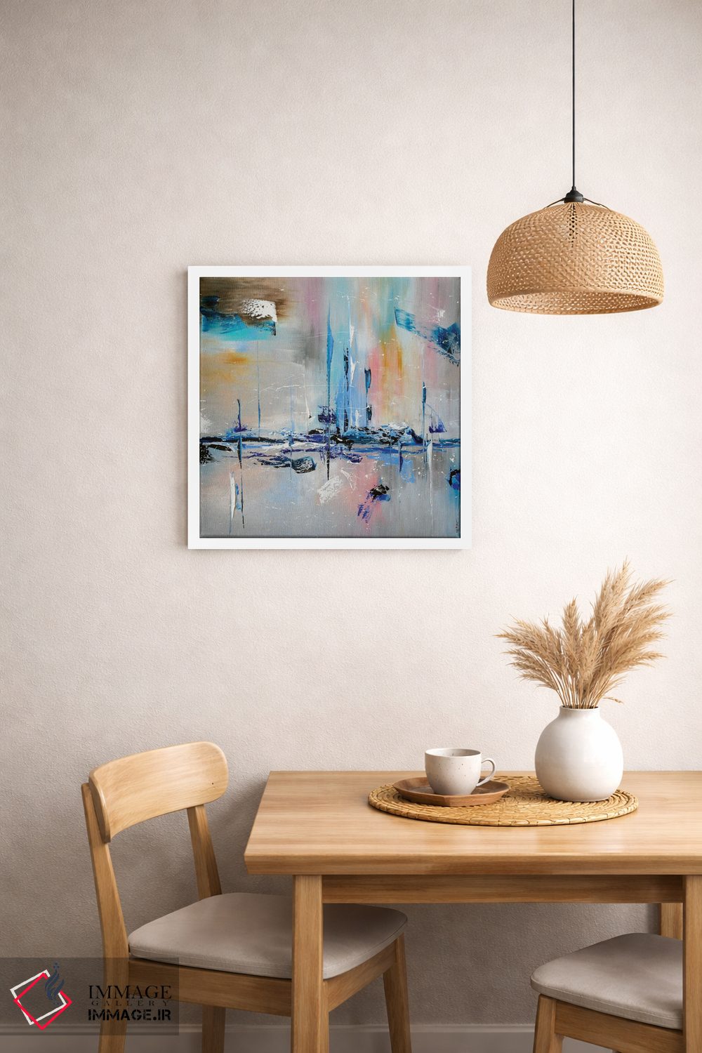 براساس پالت ترکیبی اثر، قاب تیک گرم (چوبی) پیشنهاد اول است و مشکی مات (فریم متوسط) مکمل. برای سفارشهای پروژهای با ابعاد و قابهای اختصاصی با ایماژ در تماس باشید.