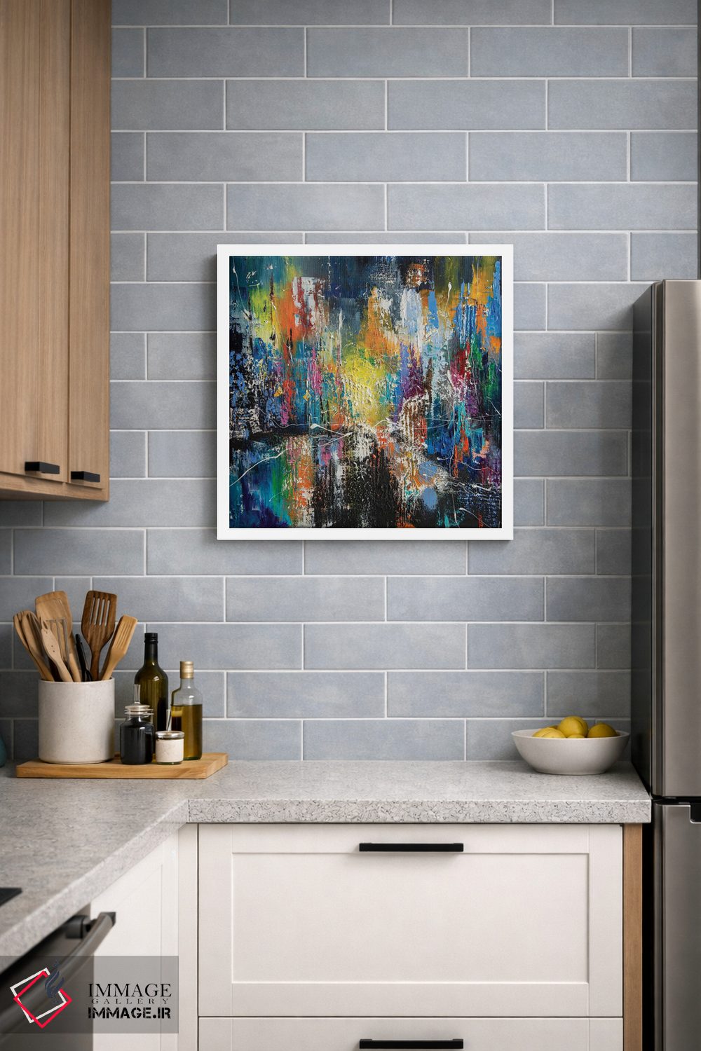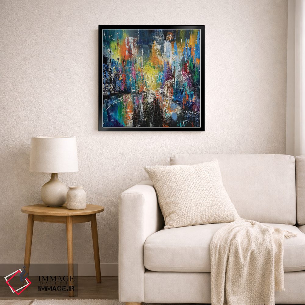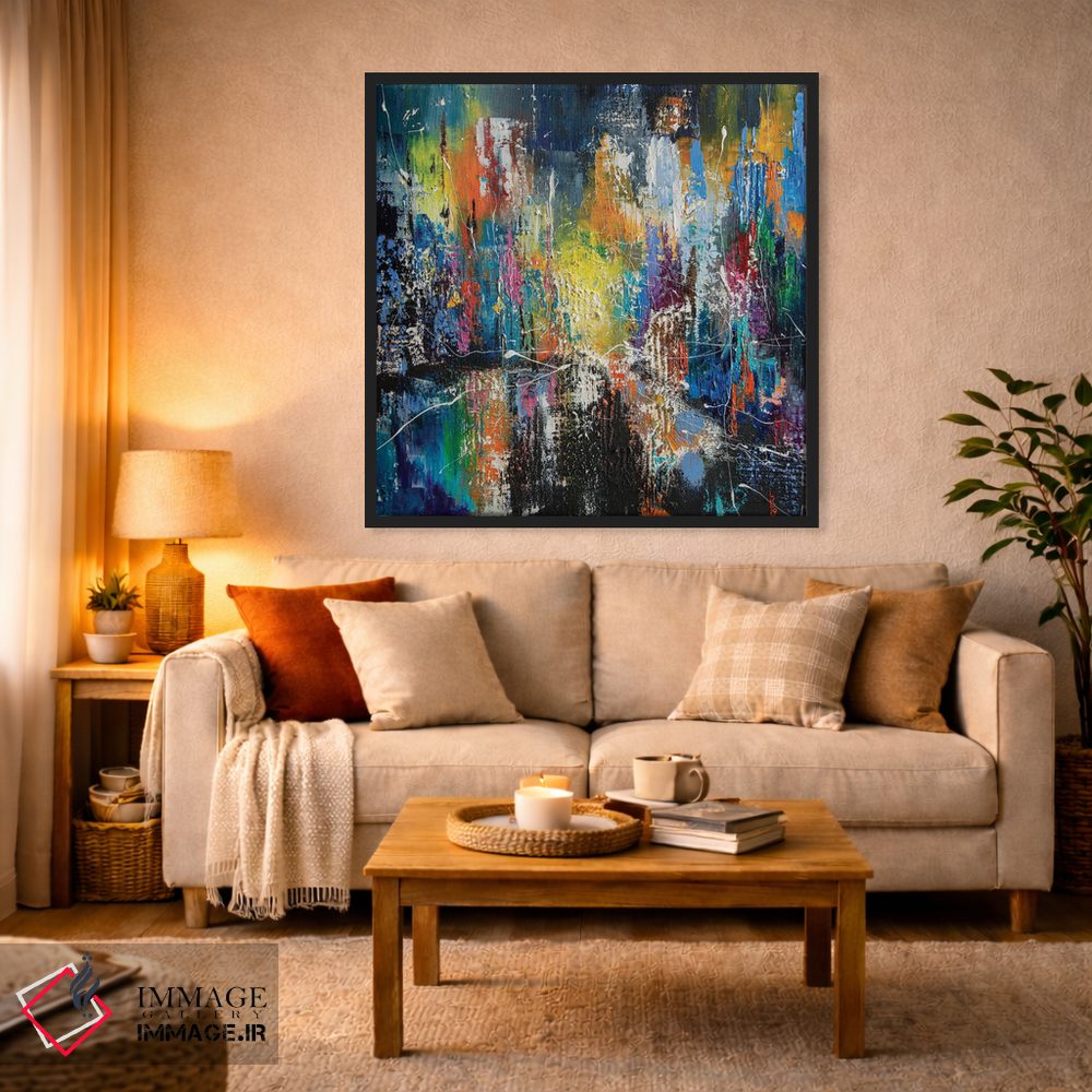 براساس پالت ترکیبی اثر، قاب تیک گرم (چوبی) پیشنهاد اول است و مشکی مات (فریم متوسط) مکمل. برای سفارشهای پروژهای با ابعاد و قابهای اختصاصی با ایماژ در تماس باشید.
