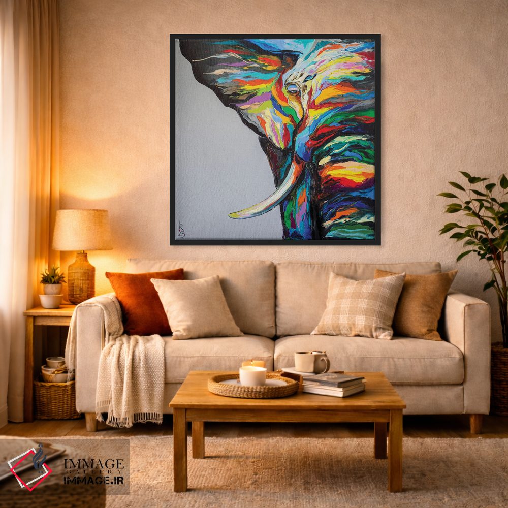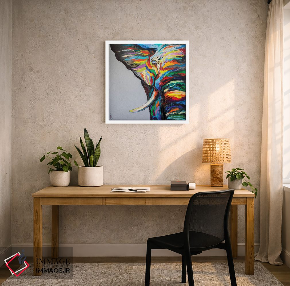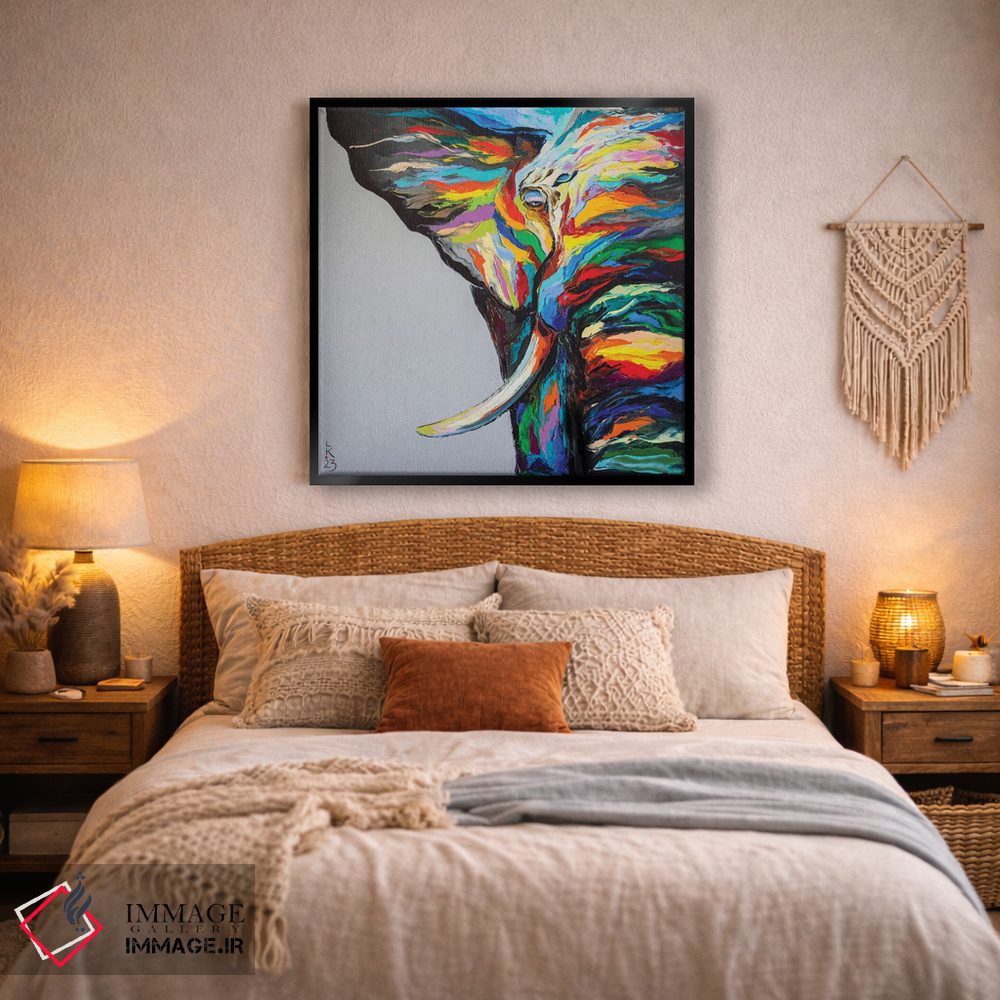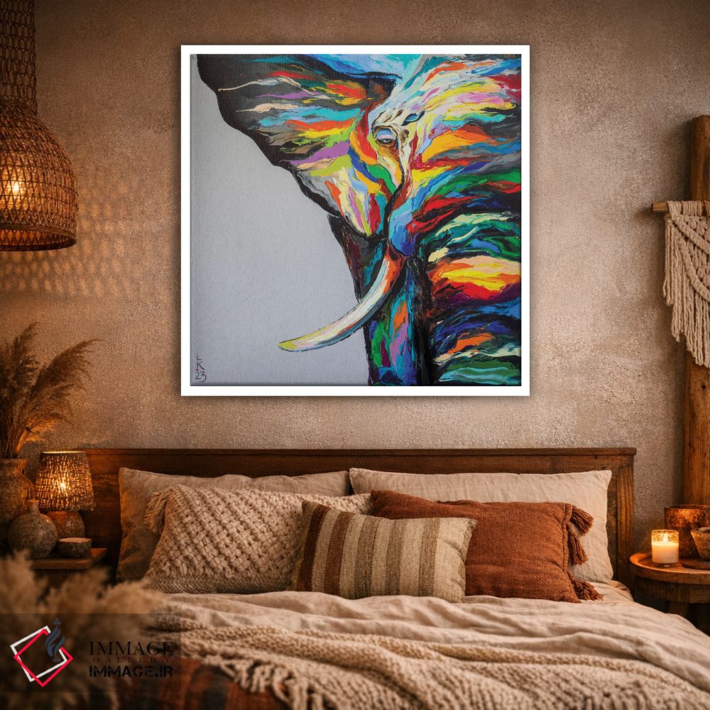 «فیل دانا» اثرِ «کوپتسووا آرت (استودیو یا برند هنری)» از آن کارهاییست که در کنار رنگهای خنثی، تضاد دلچسبی میسازد؛ برای اتاق کودک (بدون لحن کودکانه) انتخاب خوبیست. حسش صمیمی است، اما کیفیتش جدی و خوشپرداخت.
