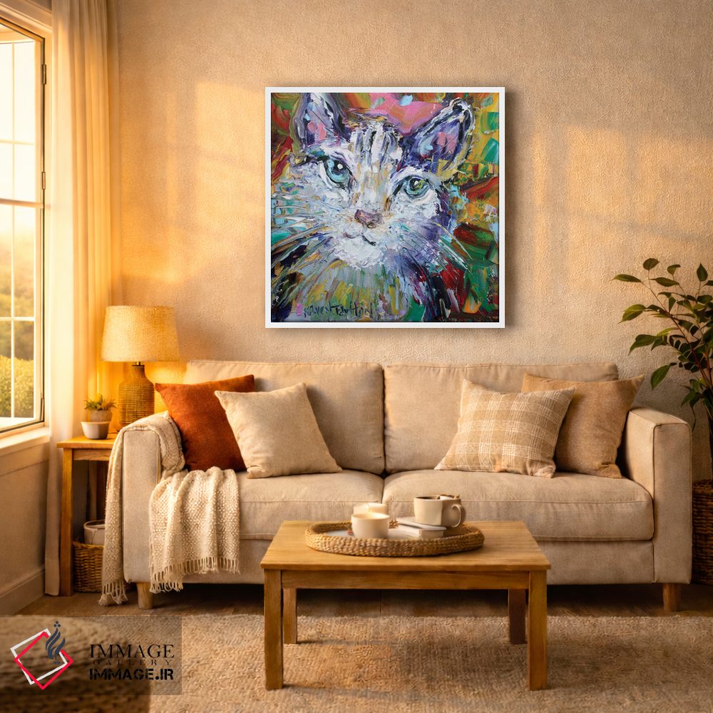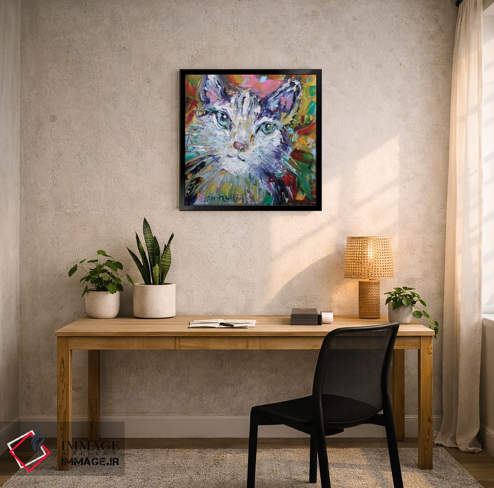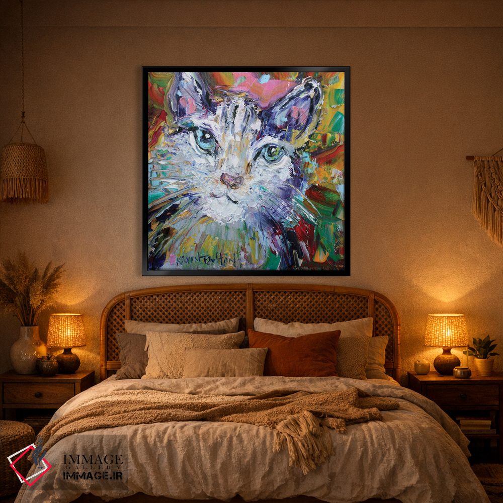 این اثر با عنوان «عشق گربهای» اثرِ «کارن تارلتون» برای دکورهای مینیمال، یک نقطهٔ توجه میسازد؛ برای اتاق کودک (بدون لحن کودکانه) انتخابی خوشسلیقه است. به دیوار، قصه میدهد—اما قصهای آرام و شیک.