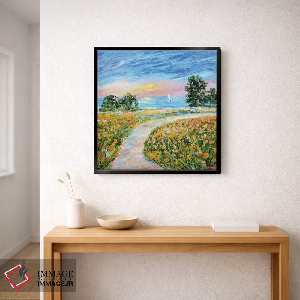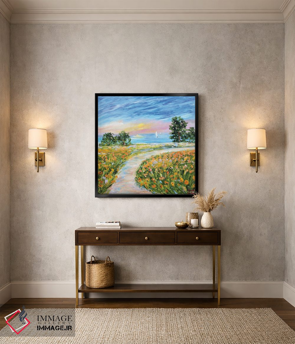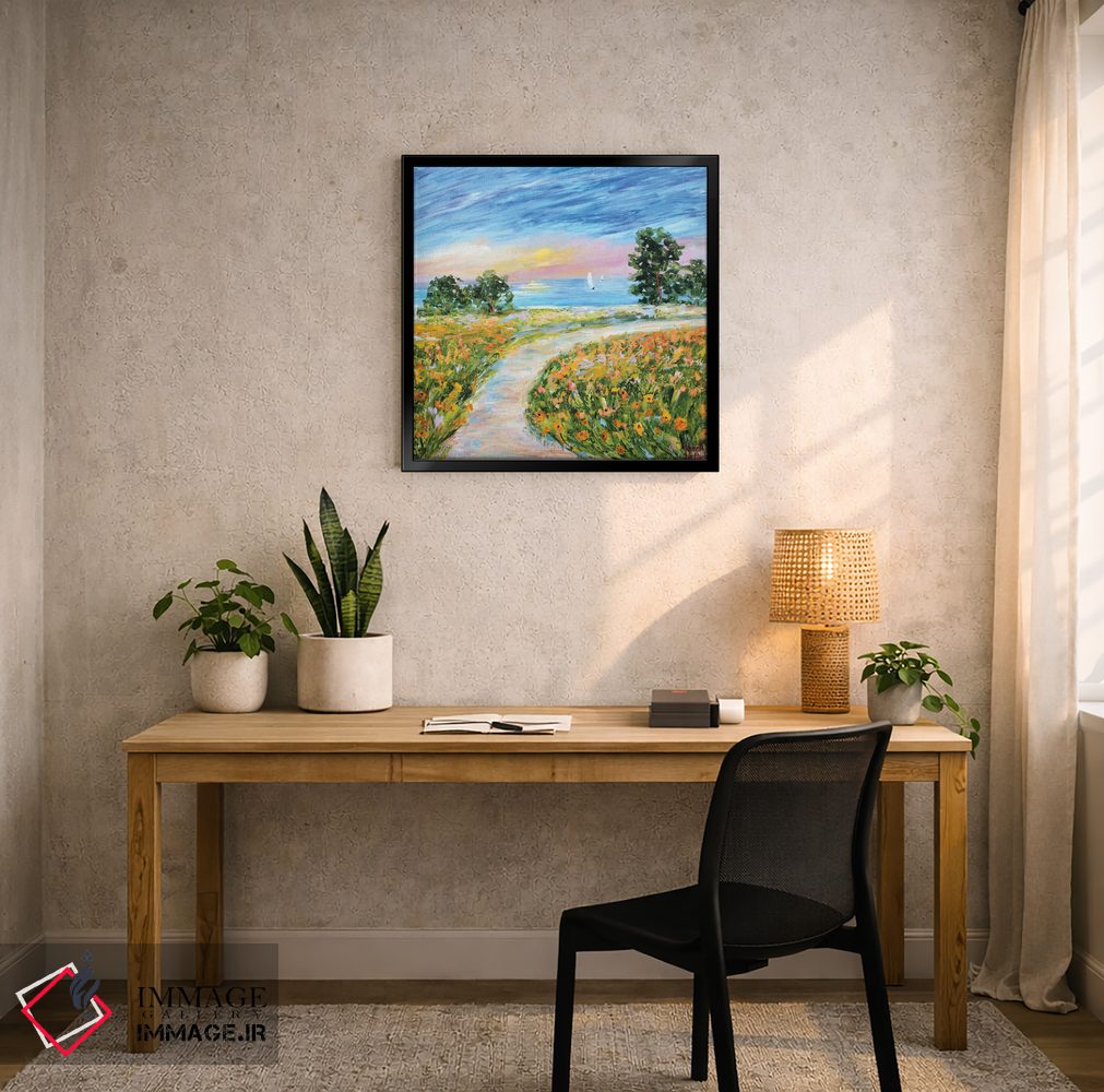 براساس پالت ترکیبی اثر، قاب تیک گرم (چوبی) پیشنهاد اول است و مشکی مات (فریم متوسط) مکمل. برای سفارشهای پروژهای با ابعاد و قابهای اختصاصی با ایماژ در تماس باشید.