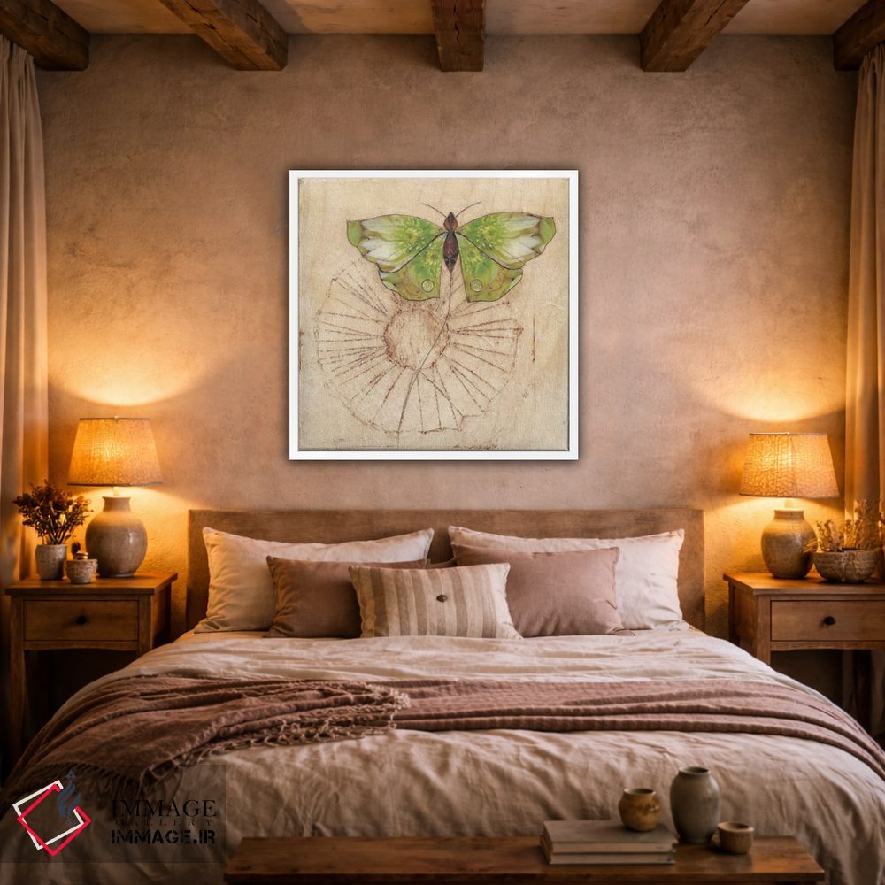 براساس پالت ترکیبی اثر، قاب بلوط روشن (چوبی) پیشنهاد اول است و استخوانی ملایم مکمل. برای سفارشهای پروژهای با ابعاد و قابهای اختصاصی با ایماژ در تماس باشید.