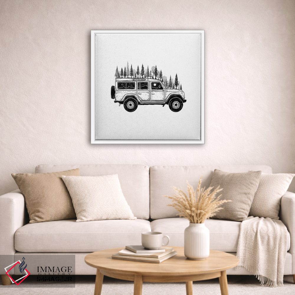 برای دیواری که میخواهید سلیقهتان را آرام و دقیق نشان بدهد، «جیپ جنگلی» اثرِ «کاری سلون» حس گالریوار را بیسروصدا وارد خانه میکند؛ برای نشیمنهای صمیمی و پذیراییهای شیک پیشنهاد میشود. جزئیاتش نزدیکِ کار هم ارزش نگاه دارد.
