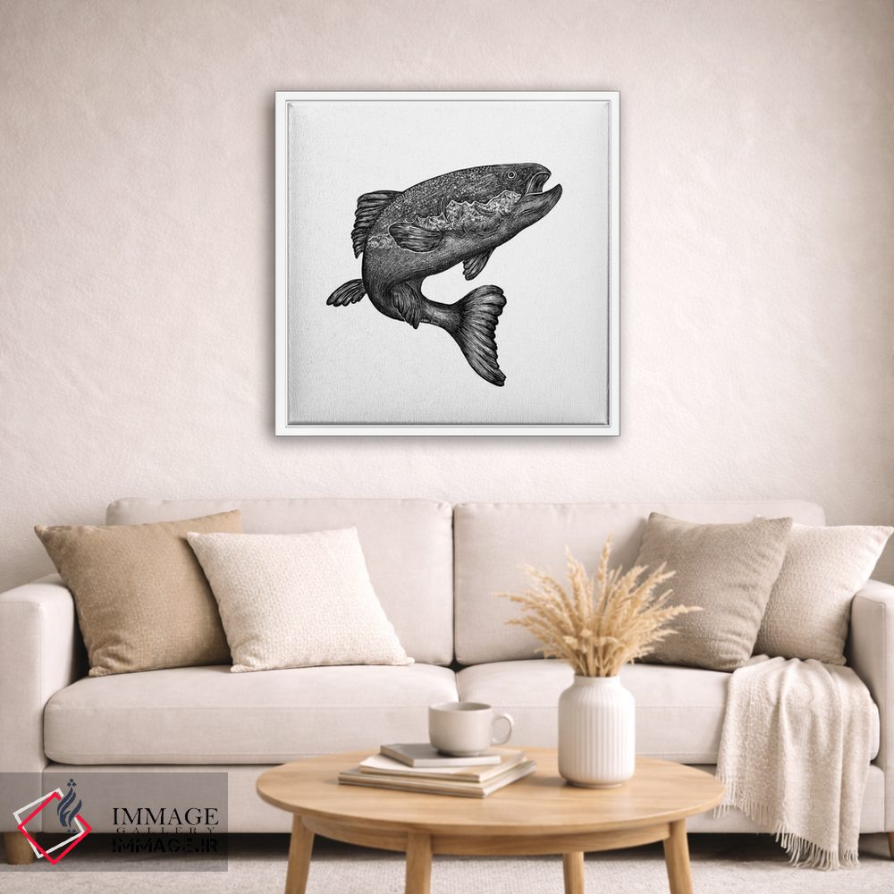 تابلو دکوراتیو ماهی سالمون جهنده اثر کاری سلون - نمای پرسپکتیو محصول
