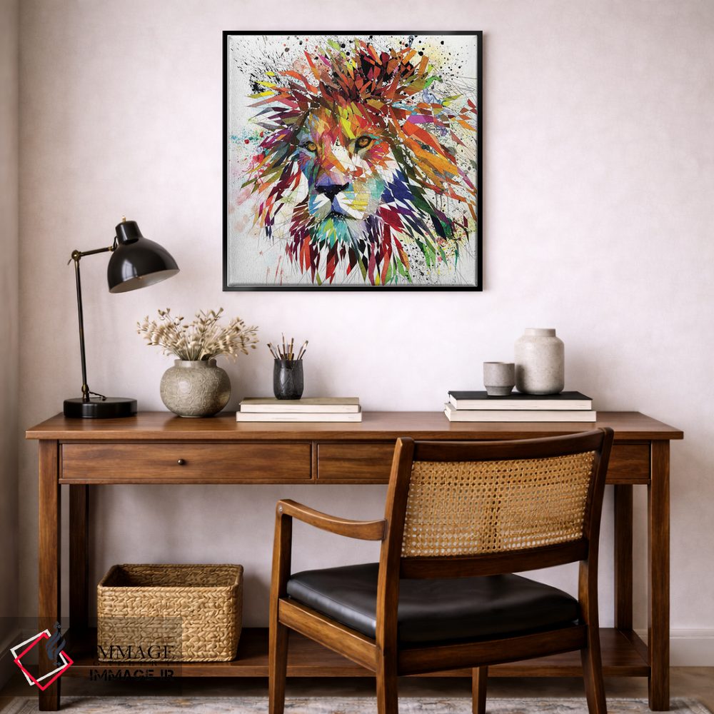 برای دیوارهای ساده، «شیر رنگی» اثرِ «کاتیا اسکای» بافت و جزئیات را طوری نشان میدهد که نگاه میماند؛ برای دیوار کنار میز کار انتخابی خوشسلیقه است. حسش صمیمی است، اما کیفیتش جدی و خوشپرداخت.