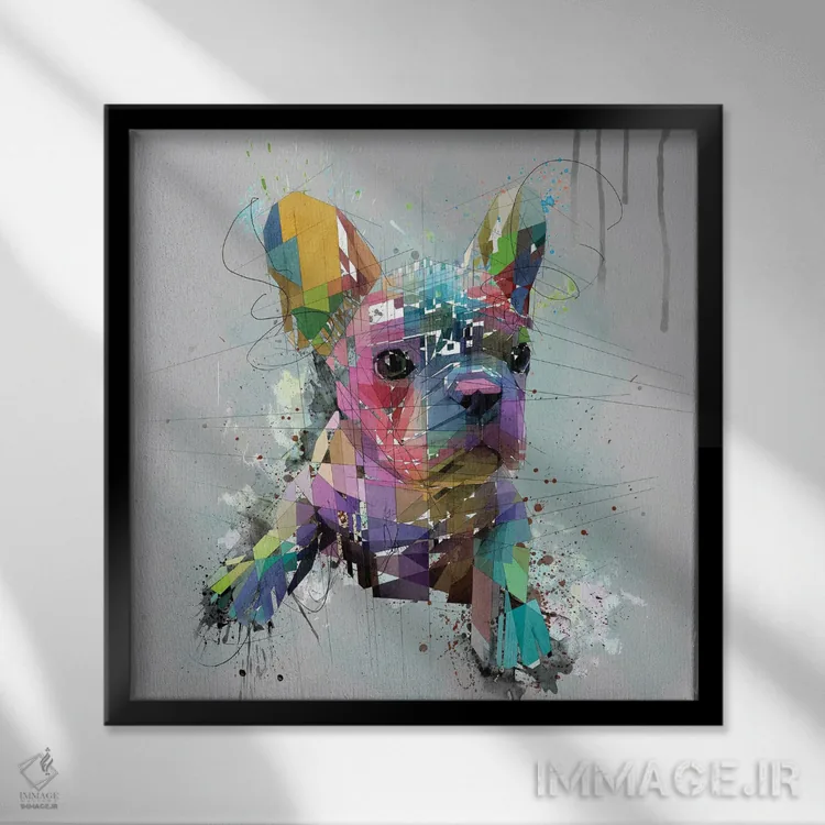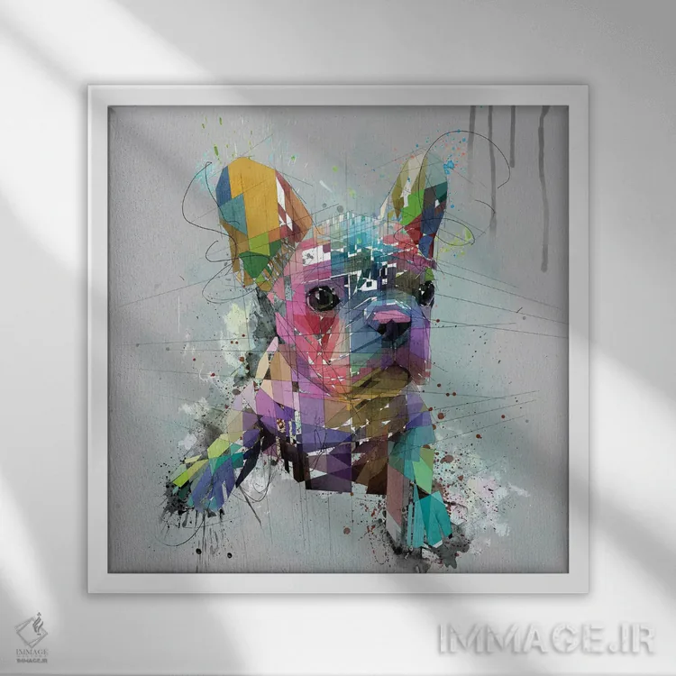 تابلو دکوراتیو توله بولداگ فرانسوی روی پس زمینه خاکستری اثر کاتیا اسکای