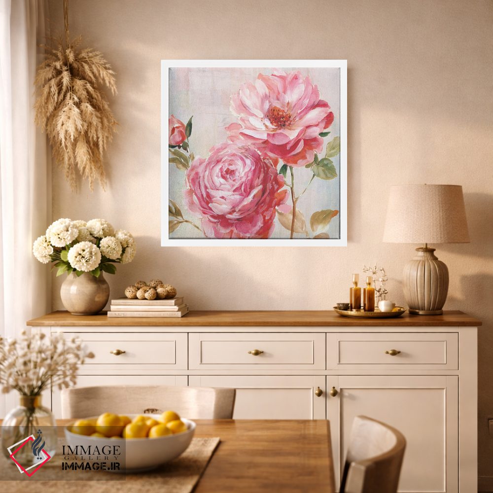 اگر دوست دارید هماهنگی کاملتر شود، رنگِ صورتی را در قابهای کوچک کناری بهکار ببرید تا اثر بهتر بهعنوان نقطهٔ کانونی بنشیند. انتخاب قاب هم میتواند بهخوبی این اکسنت را تقویت کند.