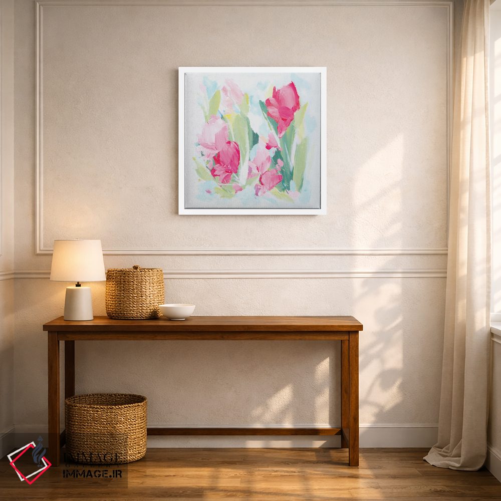 براساس پالت ترکیبی اثر، قاب تیک گرم (چوبی) پیشنهاد اول است و مشکی مات (فریم متوسط) مکمل. برای سفارشهای پروژهای با ابعاد و قابهای اختصاصی با ایماژ در تماس باشید.