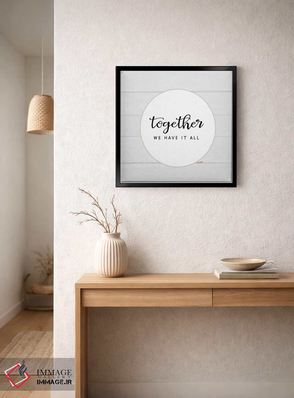 براساس پالت خنثی اثر، قاب مشکی مات (فریم باریک) پیشنهاد اول است و سفید مات (فریم باریک) مکمل. برای سفارشهای پروژهای با ابعاد و قابهای اختصاصی با ایماژ در تماس باشید.