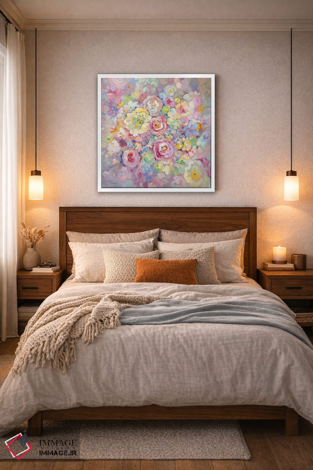 تابلو دکوراتیو گل های ظریف اثر کاتارینا والوا - نمای روبه‌رو روی دیوار