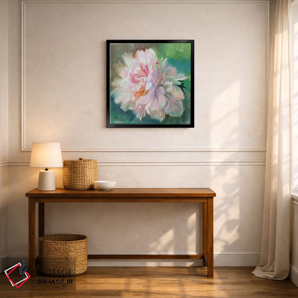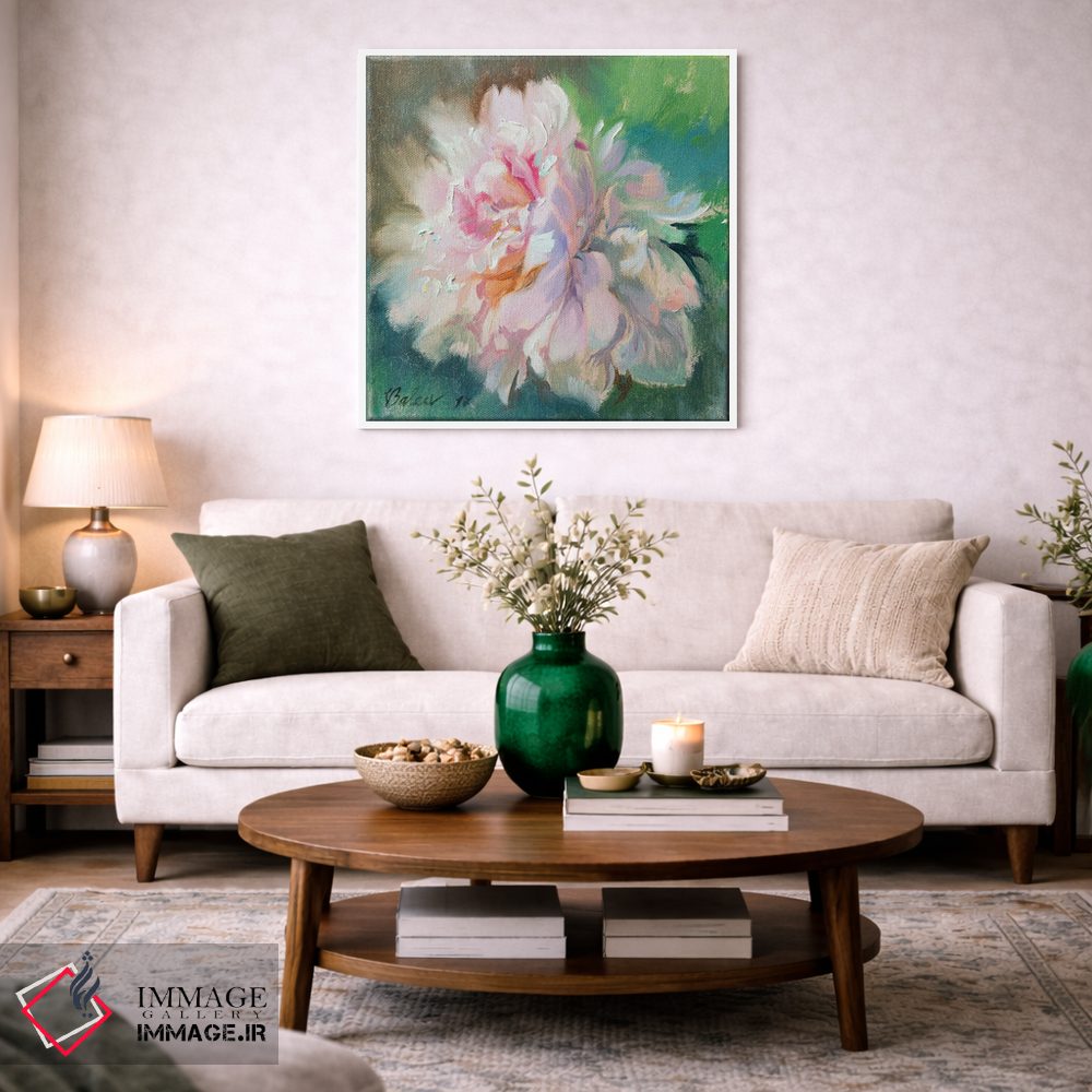 اگر دوست دارید دیوار روشنتر و آرامتر دیده شود، «گل صدتومانی ظریف» اثرِ «کاتارینا والِوا» فضا را نرمتر و مهماننوازتر میکند، برای نشیمنهای روشن گزینهٔ مناسبیست. جزئیاتش از نزدیک هم ارزش تماشا دارد.
