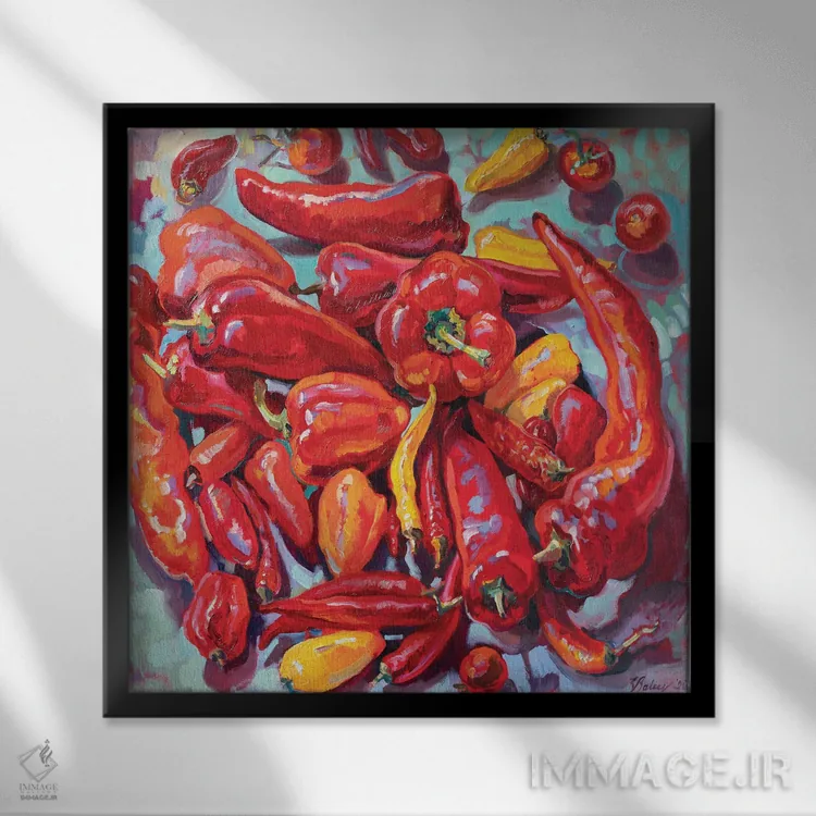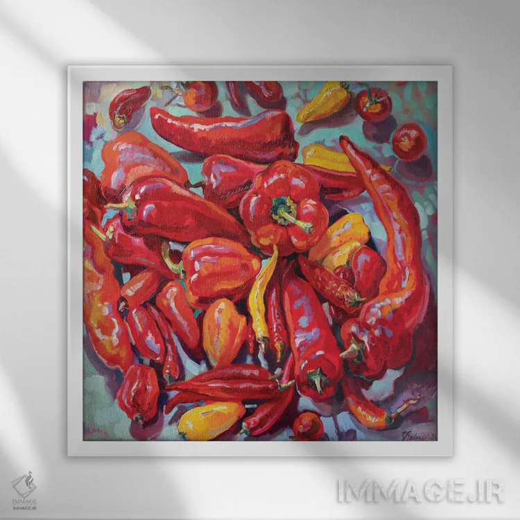 تصویری که اشتها را تحریک نمیکند؛ اما حال خوبِ غذاخوری را کامل میکند—«طبیعت بیجان قرمز با فلفل تند» اثرِ «کاتارینا والِوا».