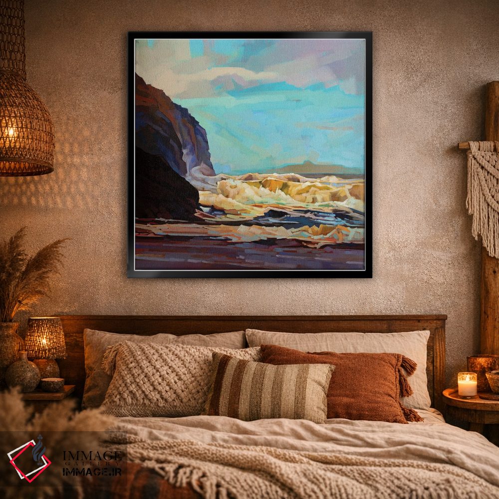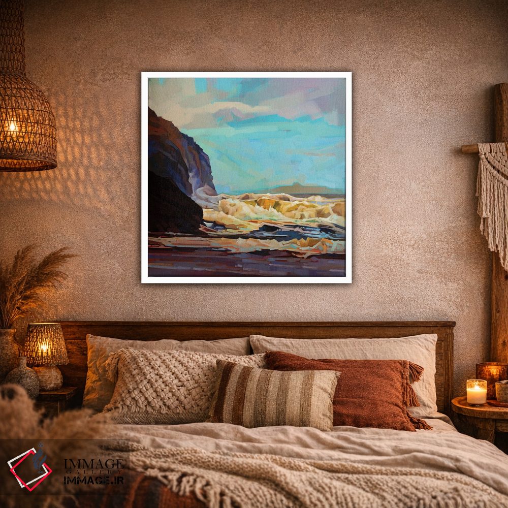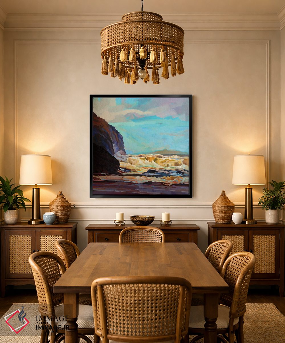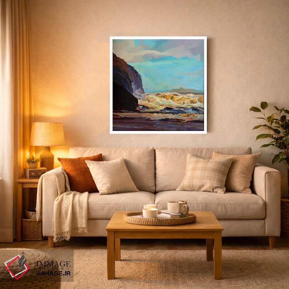 براساس پالت ترکیبی اثر، قاب تیک گرم (چوبی) پیشنهاد اول است و مشکی مات (فریم متوسط) مکمل. برای سفارشهای پروژهای با ابعاد و قابهای اختصاصی با ایماژ در تماس باشید.