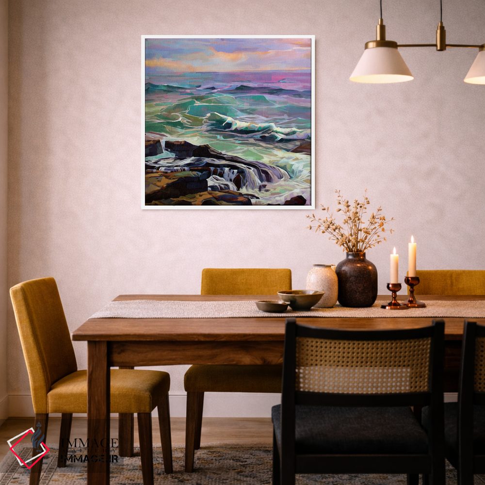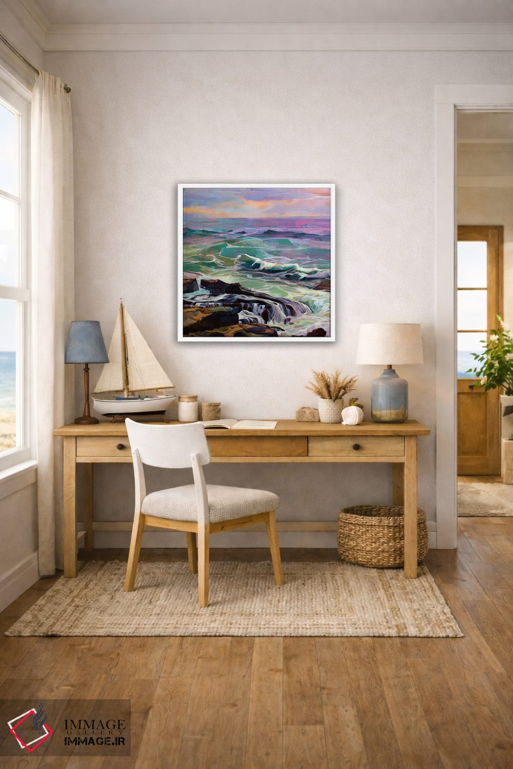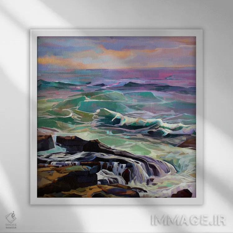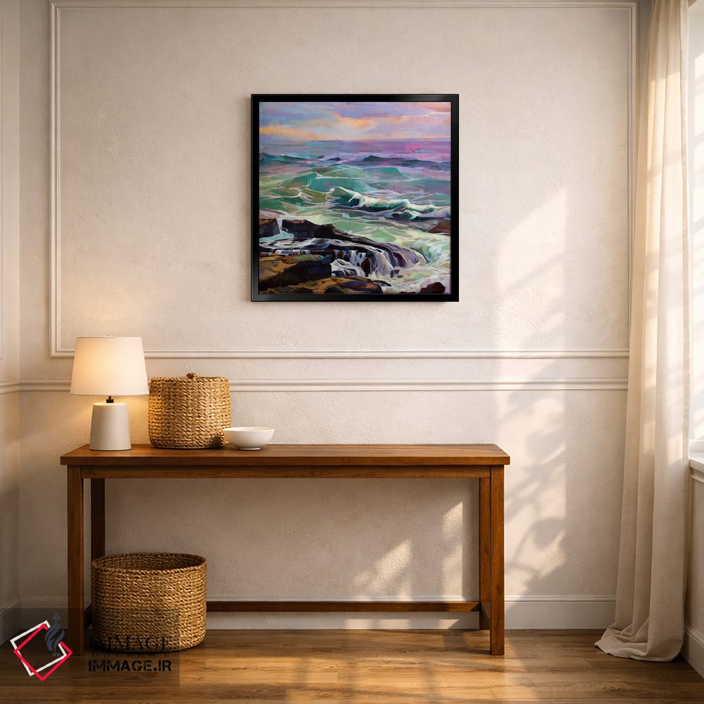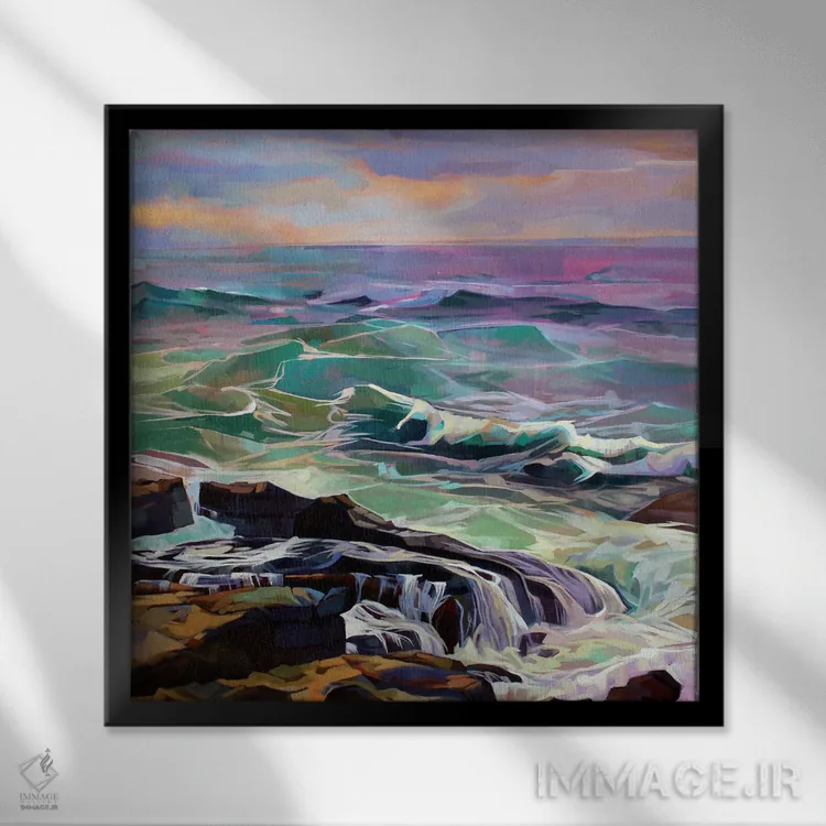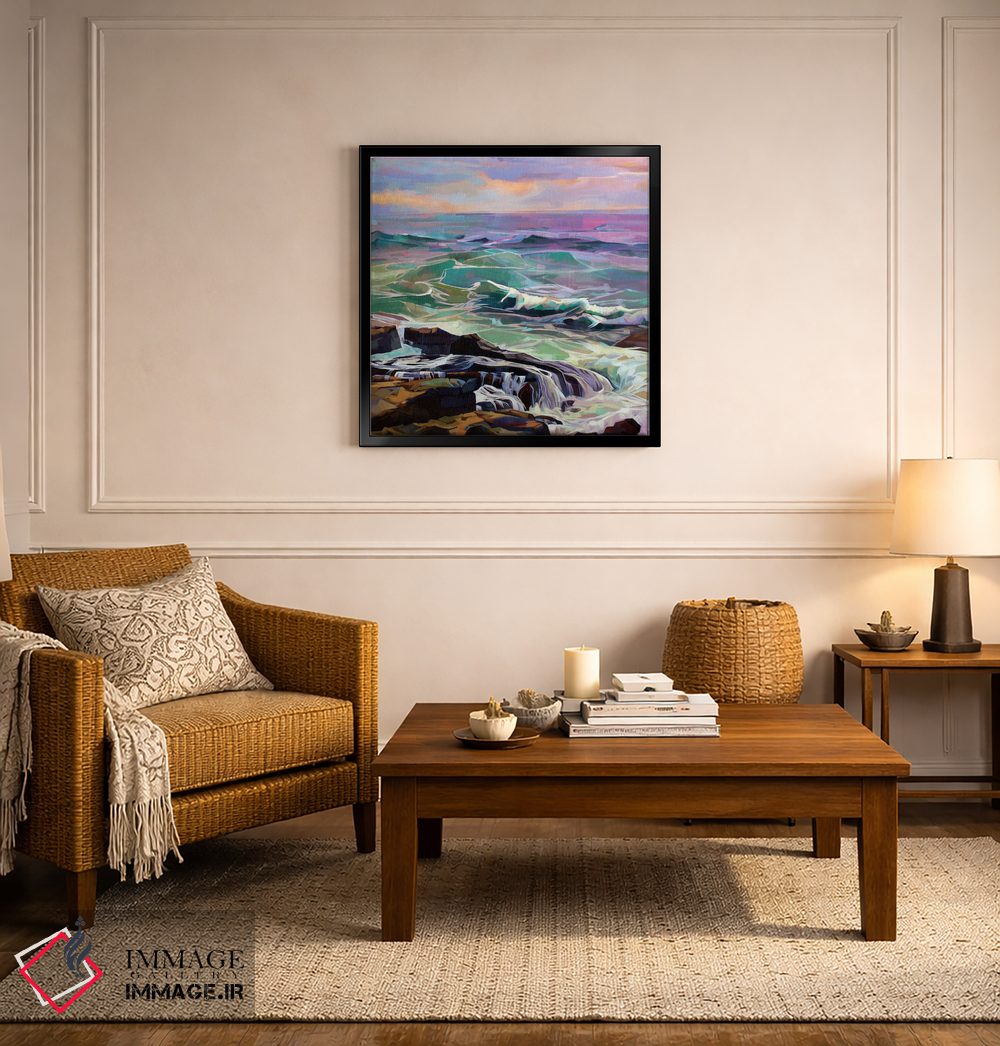 براساس پالت ترکیبی اثر، قاب تیک گرم (چوبی) پیشنهاد اول است و مشکی مات (فریم متوسط) مکمل. برای سفارشهای پروژهای با ابعاد و قابهای اختصاصی با ایماژ در تماس باشید.