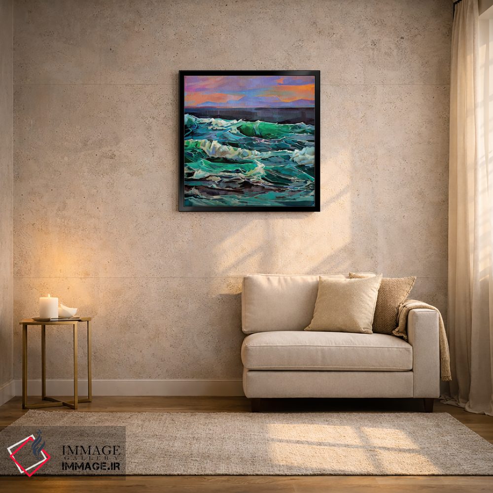 براساس پالت ترکیبی اثر، قاب تیک گرم (چوبی) پیشنهاد اول است و مشکی مات (فریم متوسط) مکمل. برای سفارشهای پروژهای با ابعاد و قابهای اختصاصی با ایماژ در تماس باشید.