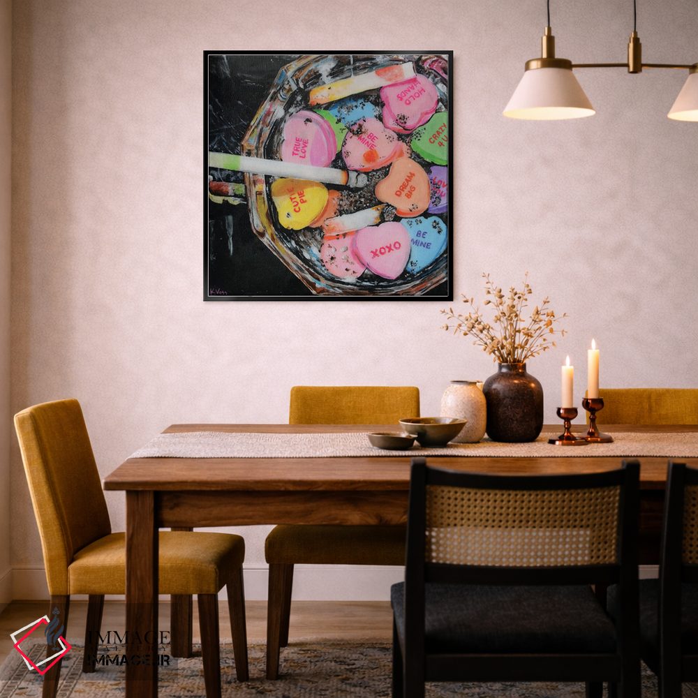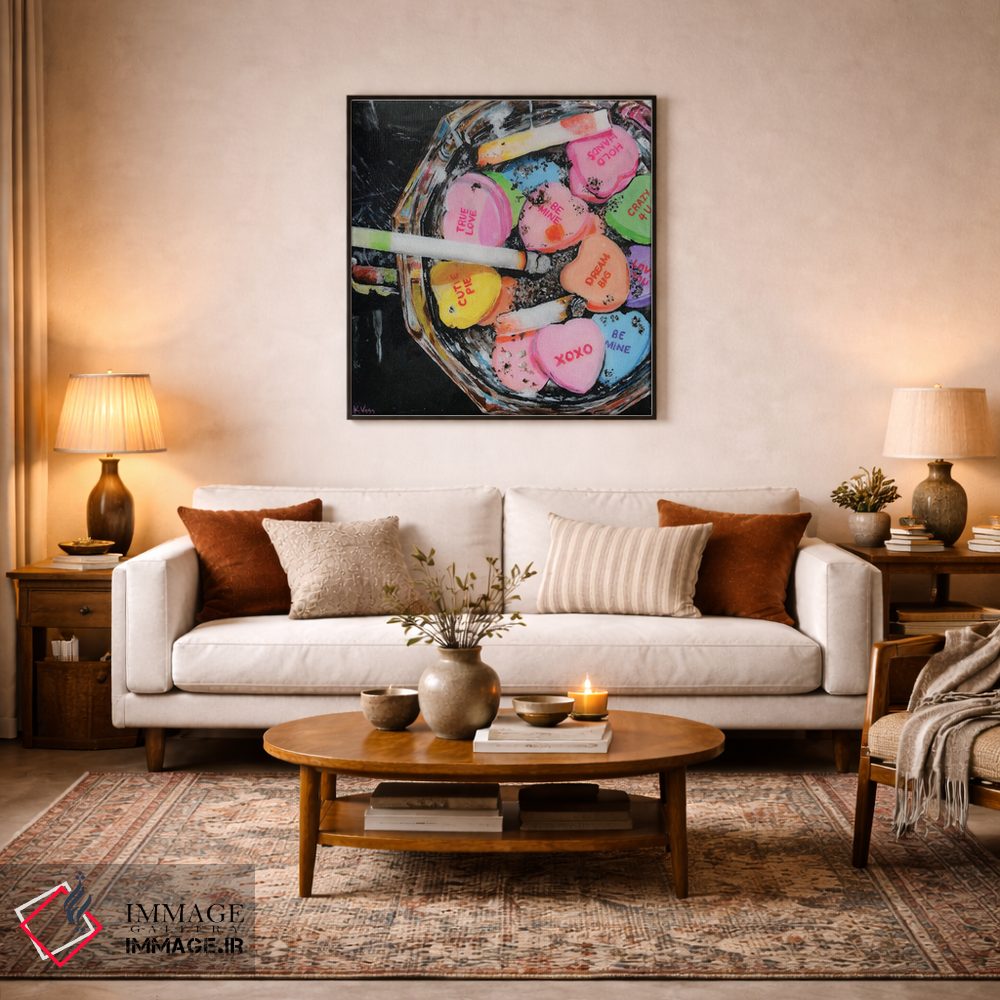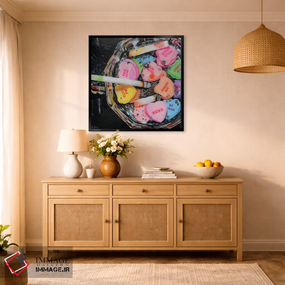 در نگاه اول، «روز ولنتاین» اثرِ «کریستین ووس» اتاق را جمعوجورتر و مرتبتر نشان میدهد؛ برای دکورهایی که بافت و جزئیات در آن مهم است پیشنهاد میشود. این تابلو میتواند شروعِ خوبی برای یک دیوار گالری باشد.