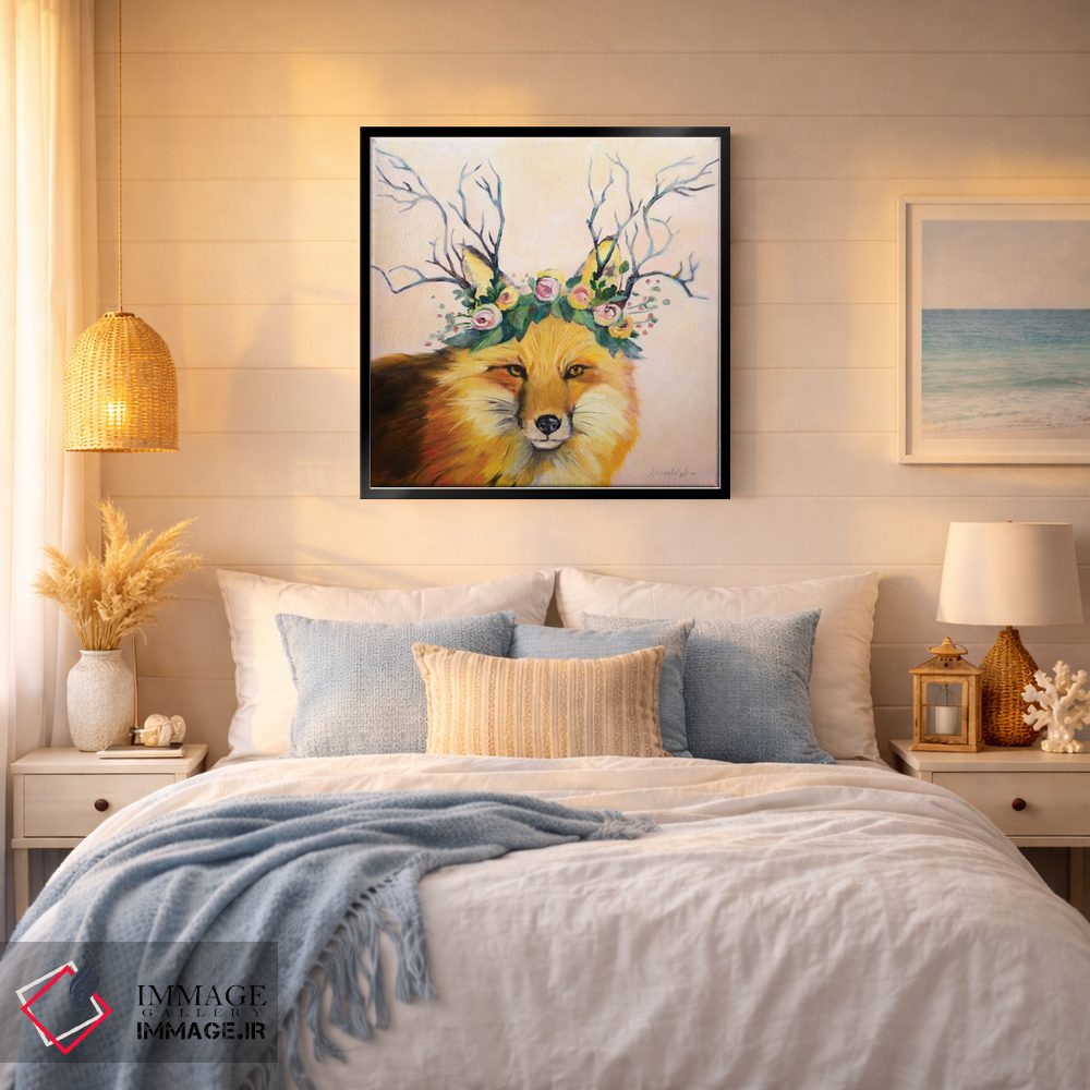 براساس پالت گرم اثر، قاب بلوط روشن (چوبی) پیشنهاد اول است و استخوانی ملایم مکمل. برای سفارشهای پروژهای با ابعاد و قابهای اختصاصی با ایماژ در تماس باشید.