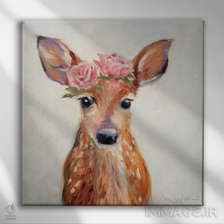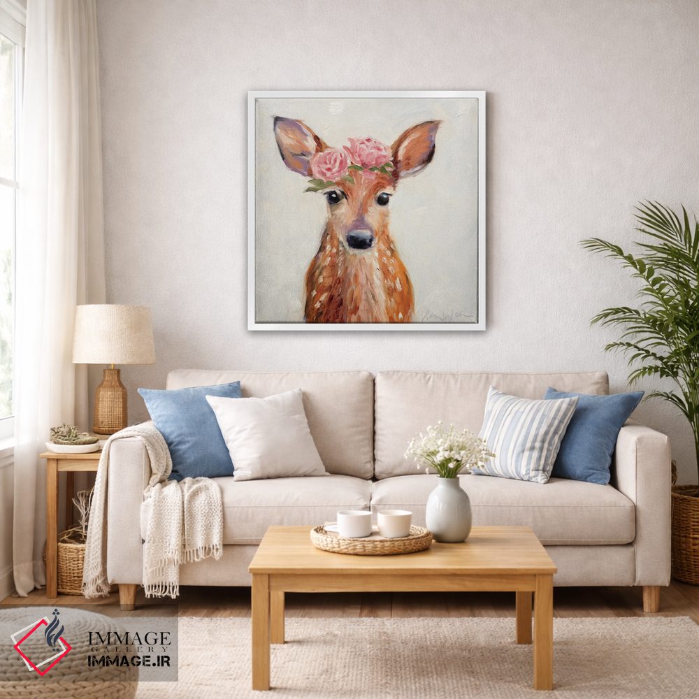 اگر میخواهید دیوار کمی سرزندگیِ محترمانه داشته باشد، «گوزن صورتی» اثرِ «کارن وبر» مثل یک امضای بامزه اما متین عمل میکند، برای فضاهای روستیک یا بوهو گزینهٔ مناسبیست. برای دیوار گالریوار هم گزینهٔ خوبیست.