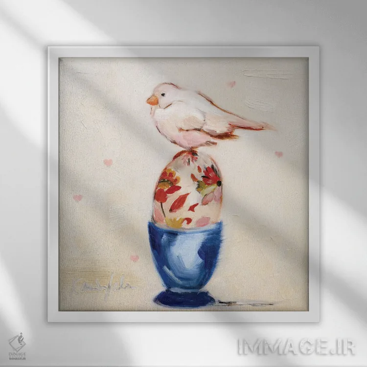براساس پالت ترکیبی اثر، قاب بلوط روشن (چوبی) پیشنهاد اول است و استخوانی ملایم مکمل. برای سفارشهای پروژهای با ابعاد و قابهای اختصاصی با ایماژ در تماس باشید.