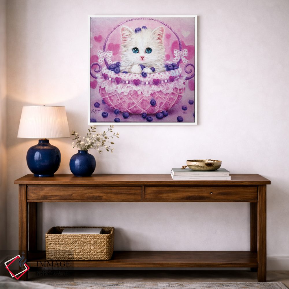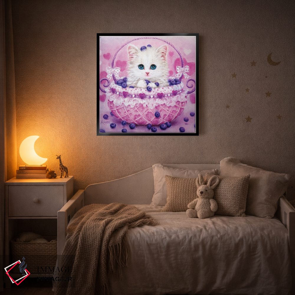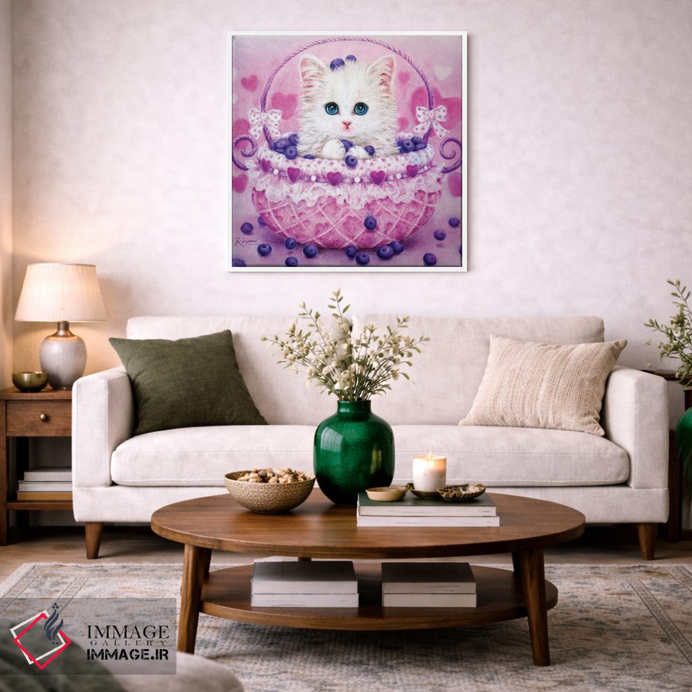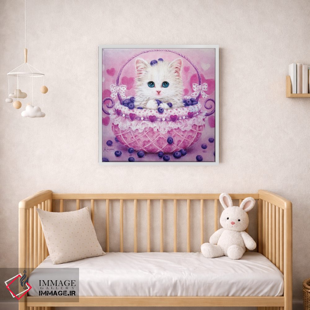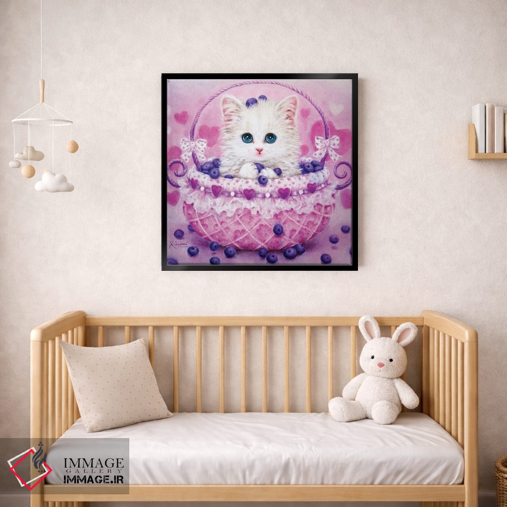 تابلو دکوراتیوِ «سبد بلوبری» با موضوع حیوانات؛ هم برای نشیمن و هم برای اتاق کودک انتخاب خوبی است اثرِ «کایومی هارای».