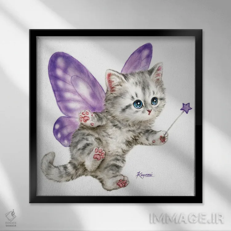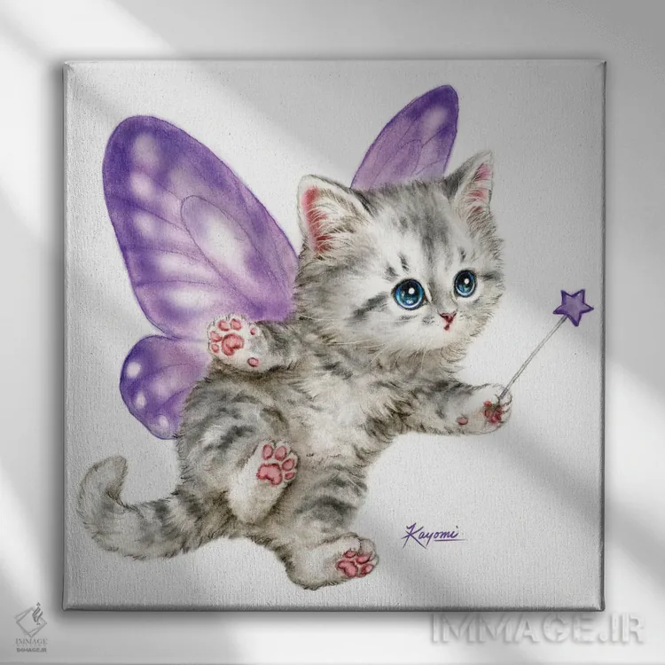 تابلو دکوراتیو بچه گربه پری بنفش اثر کایومی هارای