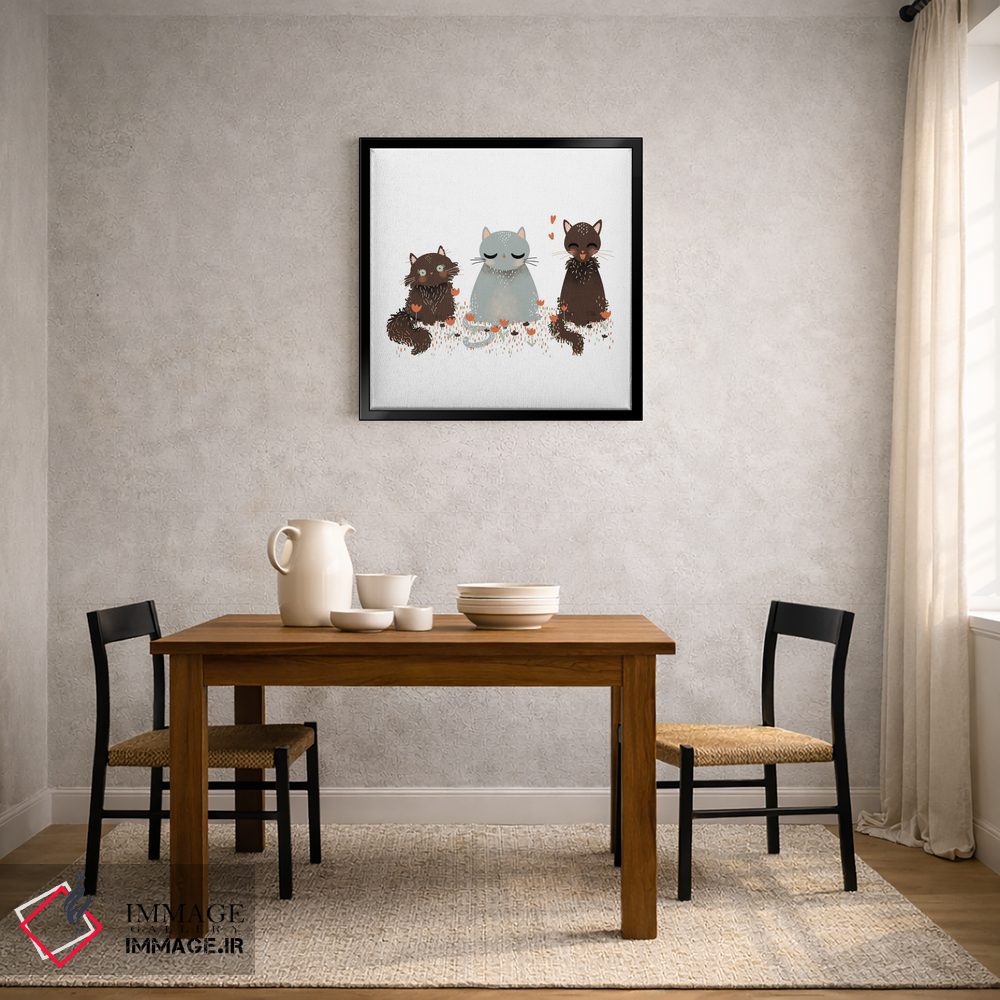 براساس پالت گرم اثر، قاب تیک گرم (چوبی) پیشنهاد اول است و مشکی مات (فریم متوسط) مکمل. برای سفارشهای پروژهای با ابعاد و قابهای اختصاصی با ایماژ در تماس باشید.