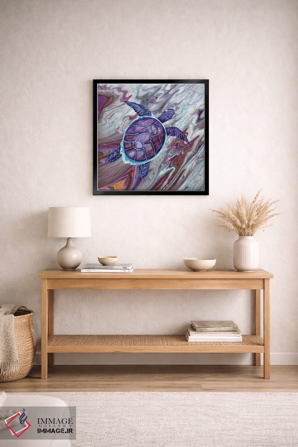 براساس پالت ترکیبی اثر، قاب تیک گرم (چوبی) پیشنهاد اول است و مشکی مات (فریم متوسط) مکمل. برای سفارشهای پروژهای با ابعاد و قابهای اختصاصی با ایماژ در تماس باشید.