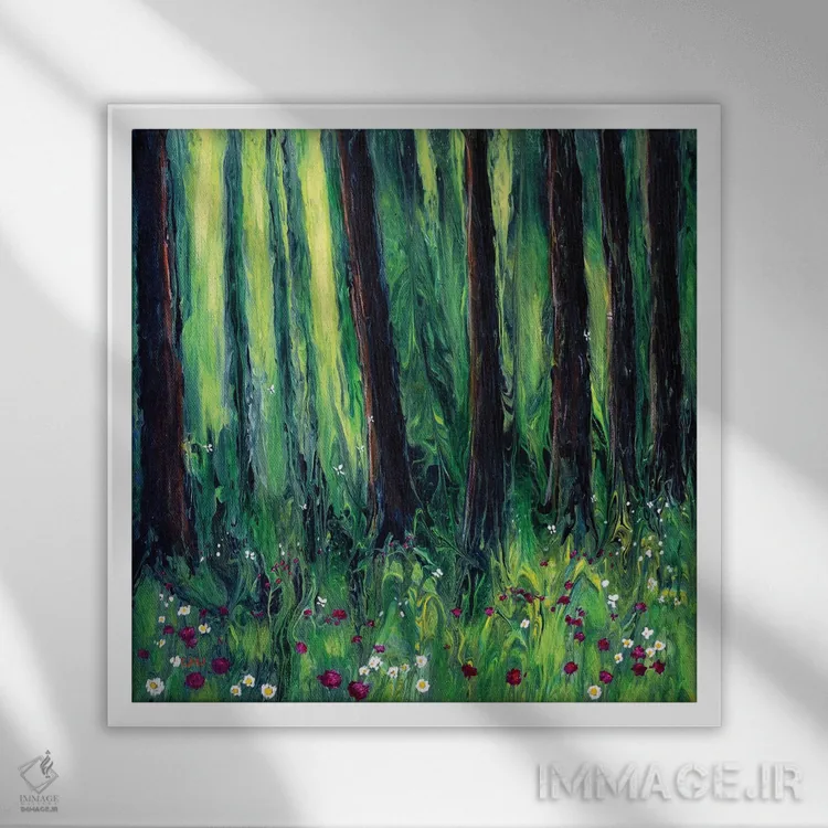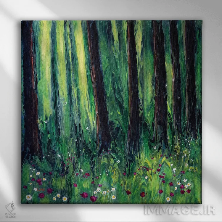 تابلو انتزاعی چمنزار گل های وحشی جنگل اثر لورا ایورسن