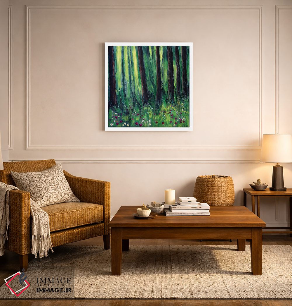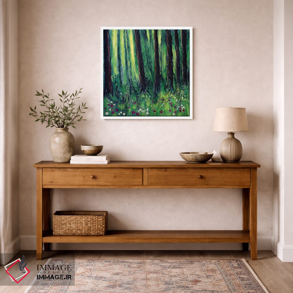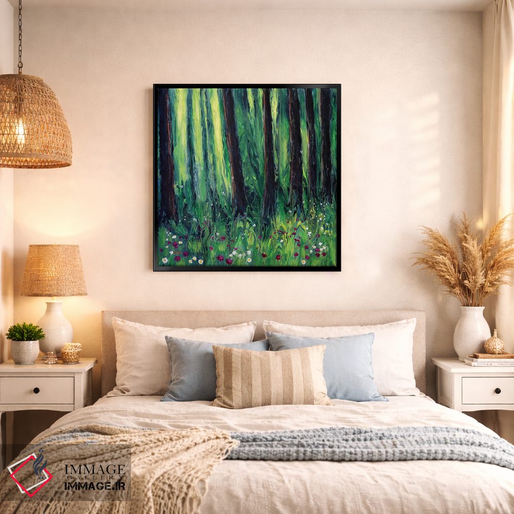 برای اتاق خواب و نشیمنهای آرام، «چمنزار گلهای وحشی جنگل» اثرِ «لورا ایورسن» برای دیوارهای ساده، یک لطافتِ دقیق میسازد؛ برای خانههایی با نور طبیعی انتخابی خوشسلیقه است. جزئیاتش از نزدیک هم ارزش تماشا دارد.