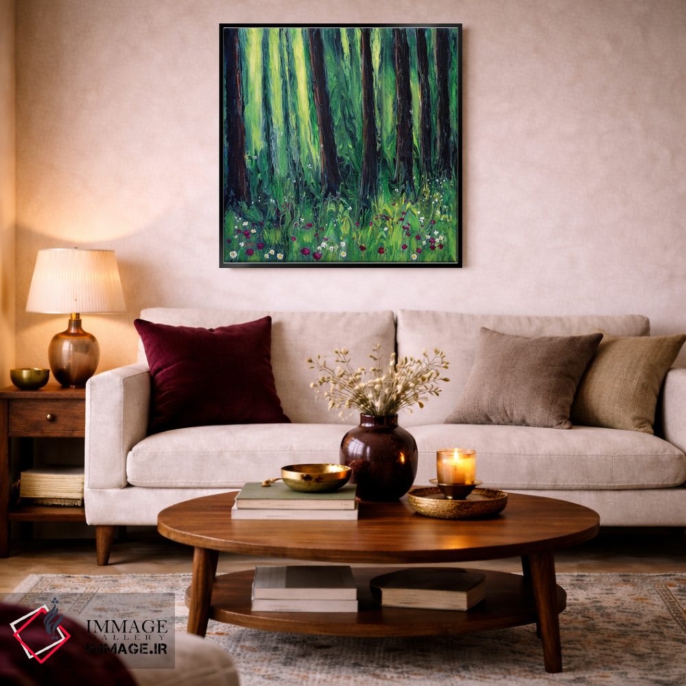 در بوم گالری ایماژ، همهچیز طوری طراحی شده که اثر روی دیوار «پرداختشده» و حرفهای دیده شود—نه پرزرقوبرقِ بیپایه؛ بلکه دقیق و خوشپرداخت. بافت ظریف کنواس باعث میشود حس اثر هنری را در نگاه نزدیک نگه میدارد بدون اغراق؛ فقط دقیقتر. با کنترل تونها، کمک میکند رنگها روی دیوار واقعیتر بنشینند. در نهایت، نتیجه چیزی شبیه تفاوت نسخهی معمولی با نسخهی باکیفیتتر است: نه رنگِ بیشتر، بلکه پرداخت بهتر؛ و اگر بخواهید، میتوان چیدمان را برای گالریوال هم پیشنهاد داد.