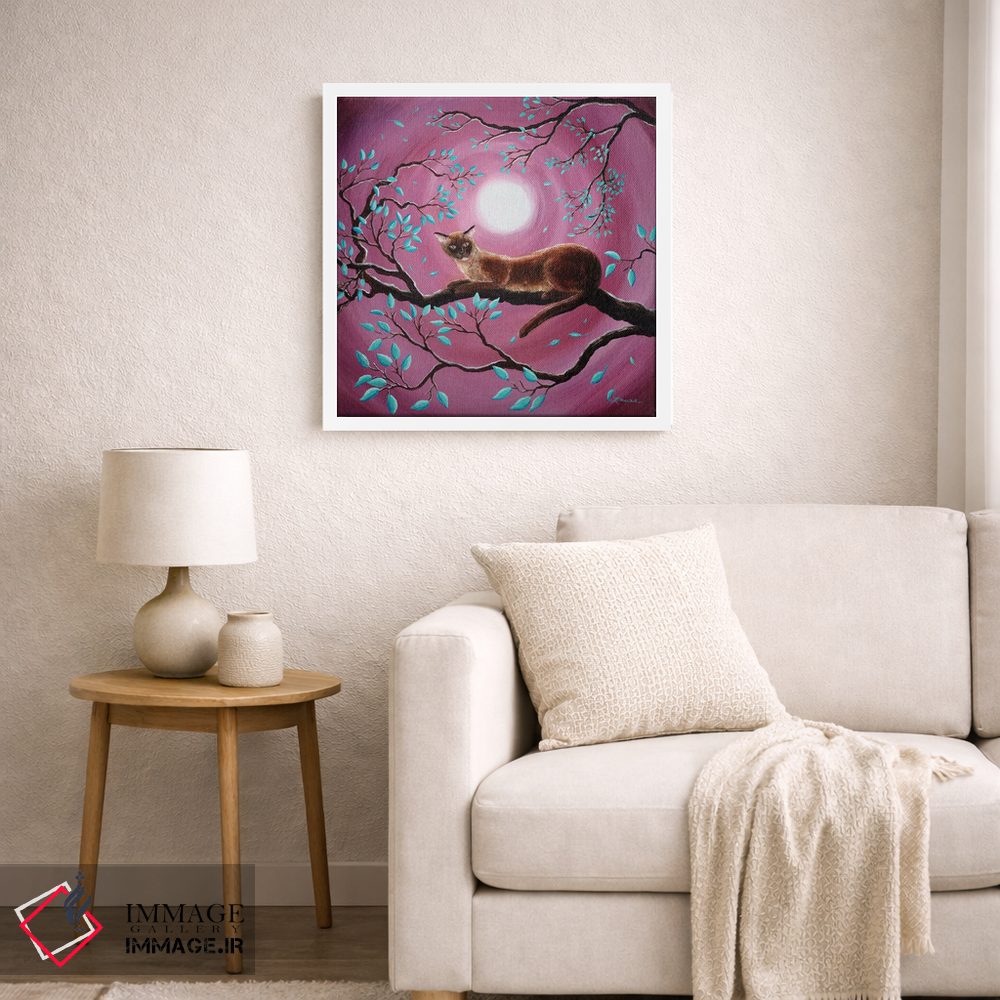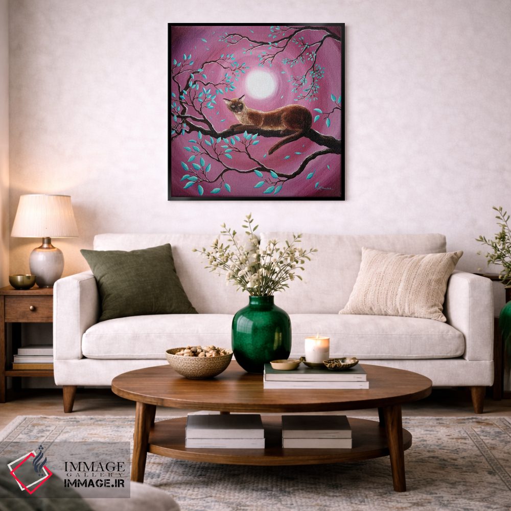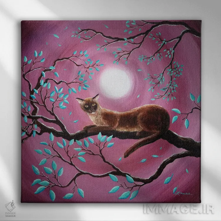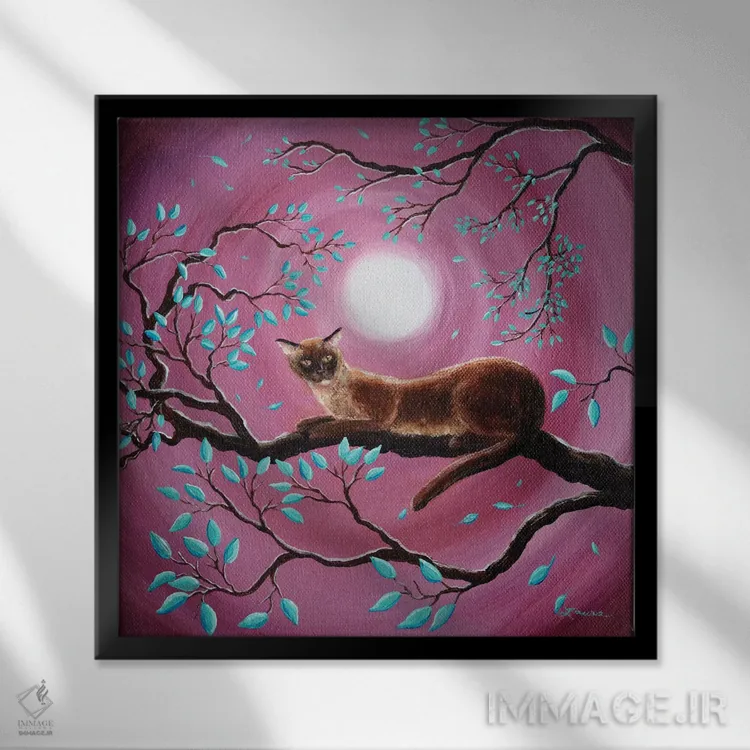 تابلو دکوراتیو گربه برمه ای شکلاتی در برگ های رقصان اثر لورا ایورسن