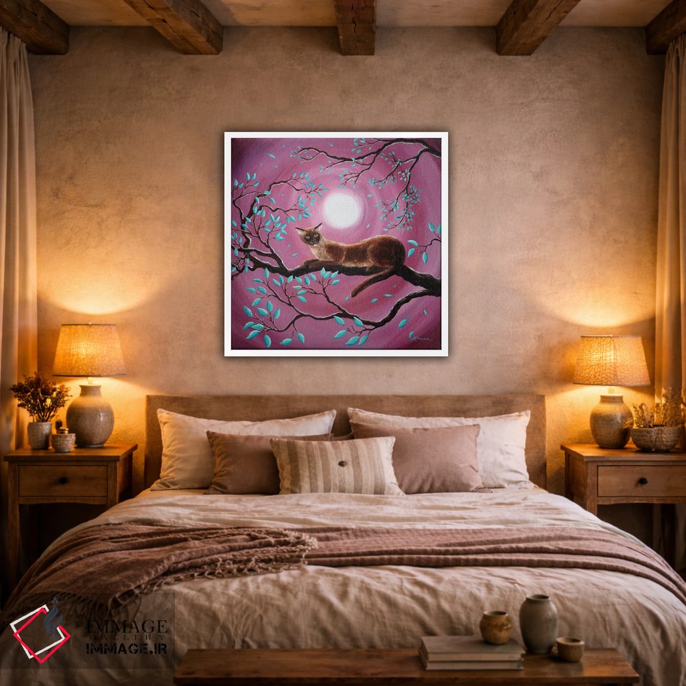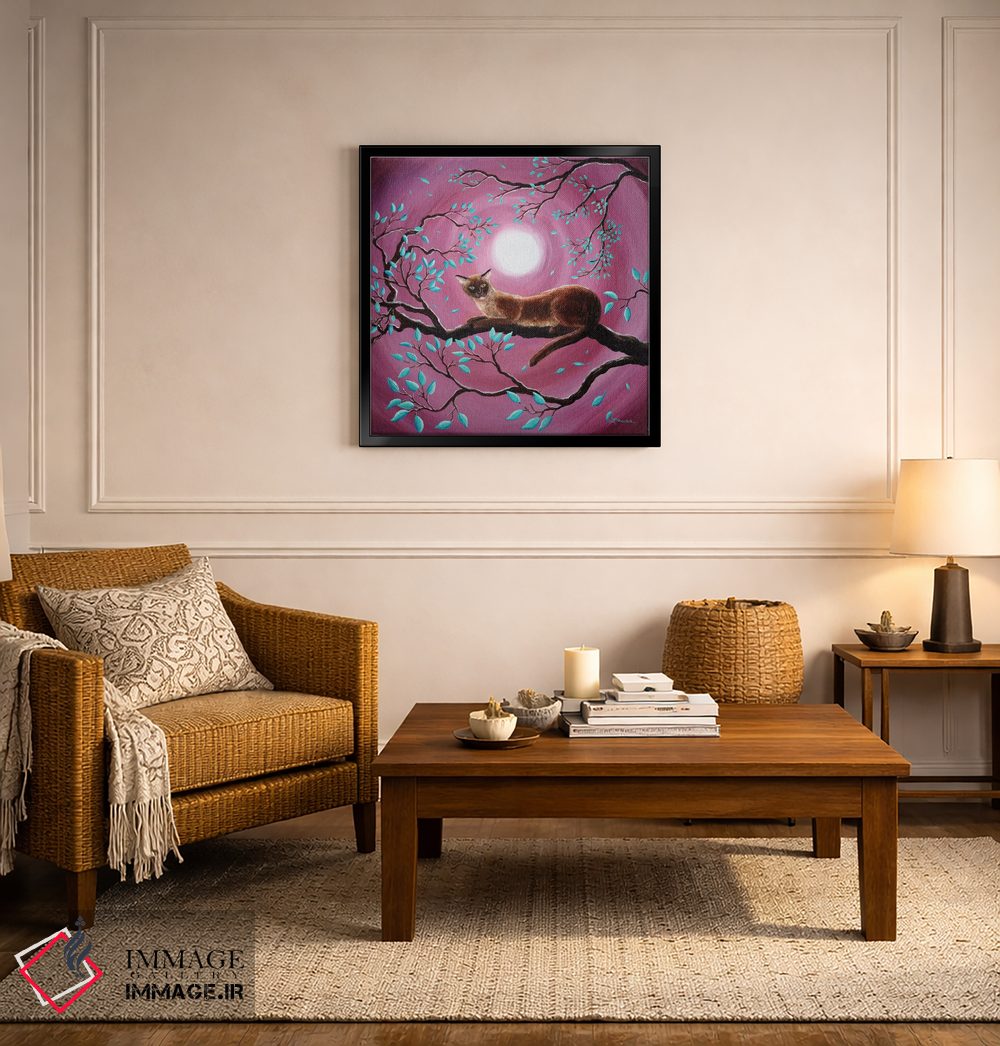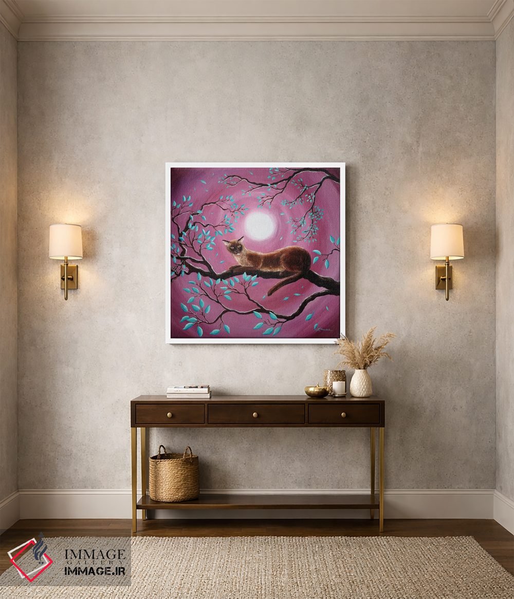 تابلو دکوراتیو گربه برمه ای شکلاتی در برگ های رقصان اثر لورا ایورسن