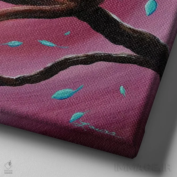 تابلو دکوراتیو گربه برمه ای شکلاتی در برگ های رقصان اثر لورا ایورسن - نمای نزدیک بافت بوم
