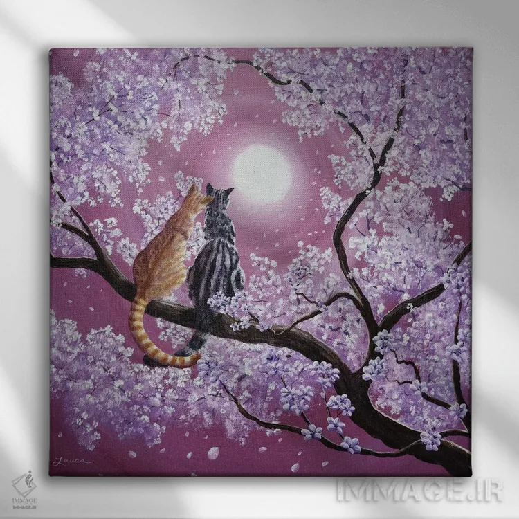 تابلو دکوراتیو گربه های تابیت نارنجی و خاکستری در شکوفه های گیلاس اثر لورا ایورسن
